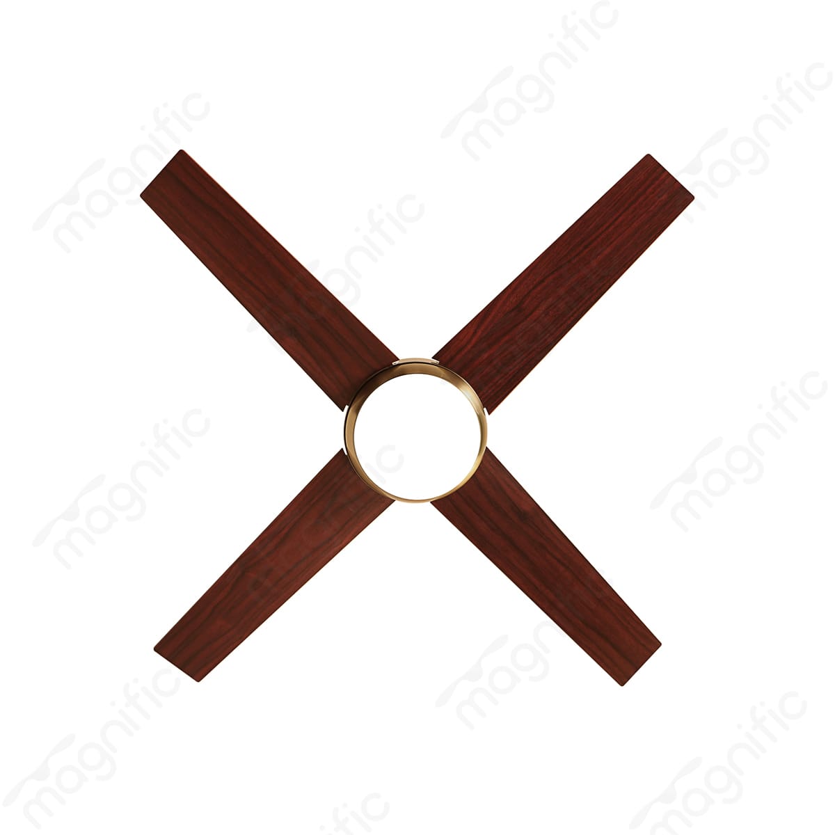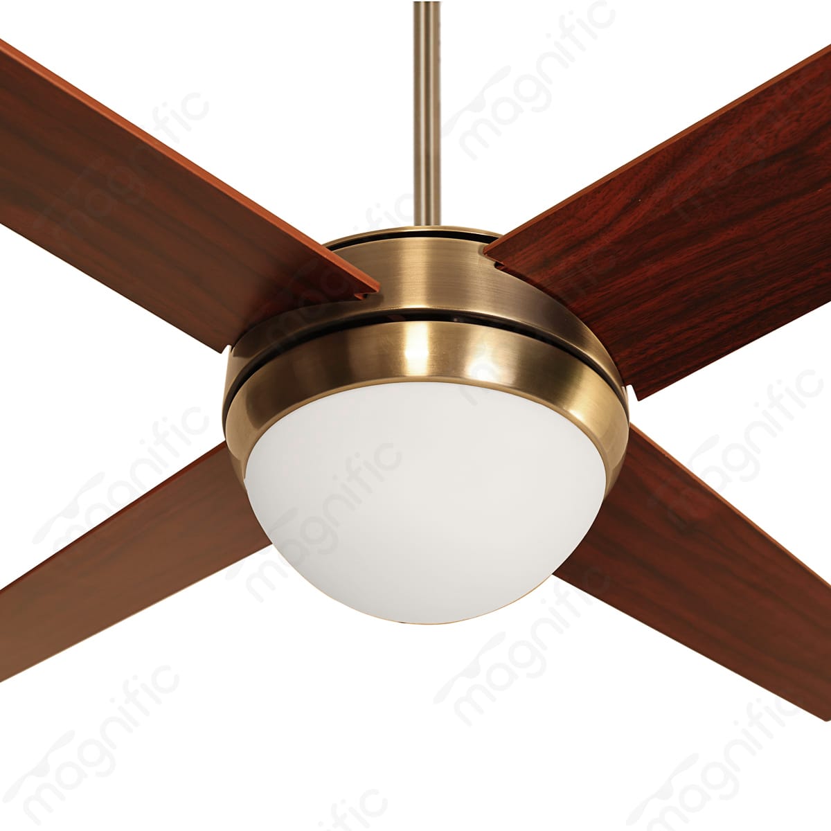 The Magnific Euro Ceiling Fan, This classic fan features a timeless antique brass finish and four elegant Oakwood and Rosewood wooden blades. Enjoy the perfect blend of style and function with its integrated LED light and powerful airflow. The unique dome design enhances light dispersion, creating a warm and inviting ambiance.