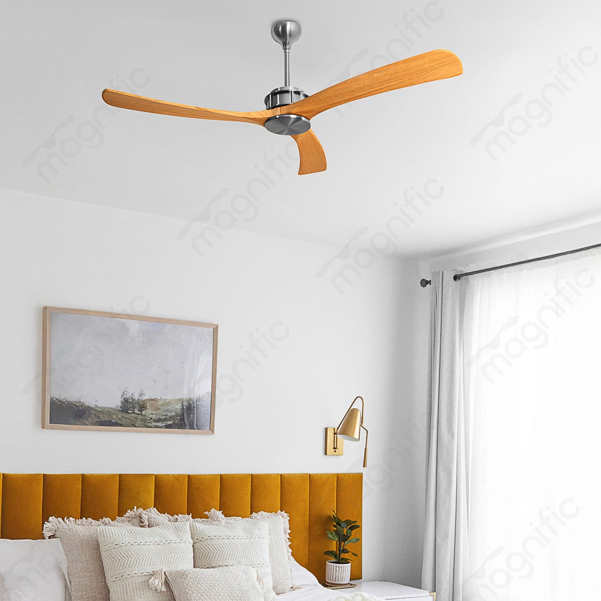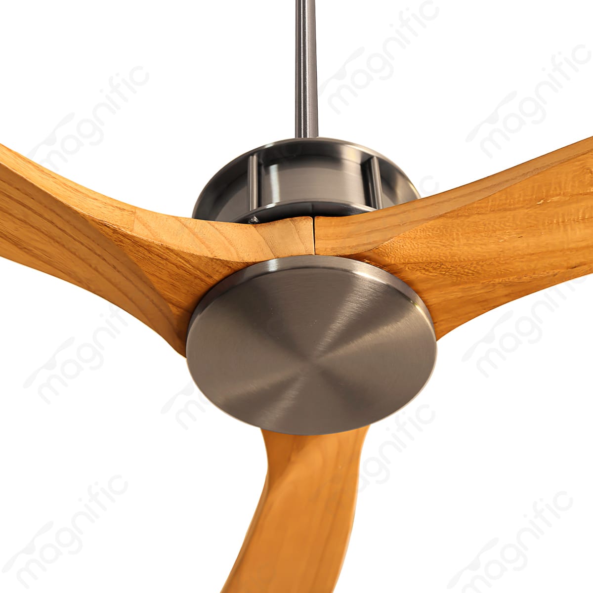 Embrace natural elegance with the Magnific Beechwood, a 54-inch modern ceiling fan designed to elevate your living spaces. Crafted with three beech wood blades, this fan exudes warmth and sophistication. The beautiful wood grain complements a variety of décor styles, while the stainless steel finish of the body adds a touch of contemporary flair.