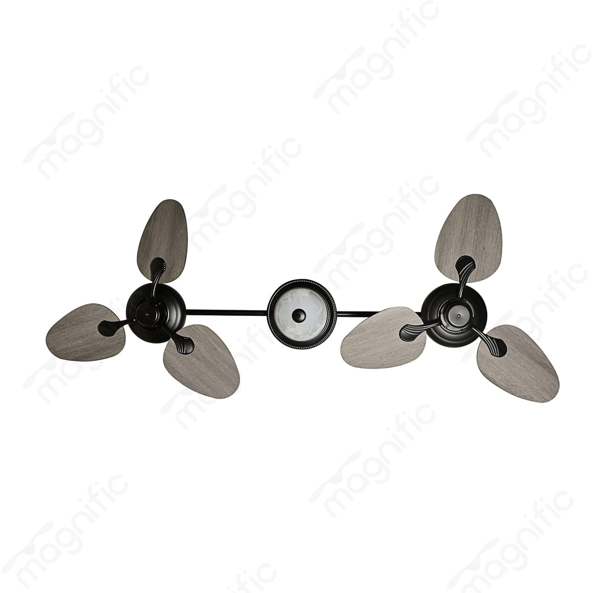Experience exceptional airflow and modern design with the Nissar 72-inch Double Ceiling Fan. Its unique dual-fan design delivers powerful airflow perfect for large spaces, both indoors and outdoors. Enjoy customizable comfort with a dimmable, color-changing LED light and convenient remote control. The matte black body, Special wooden blades, and adjustable fan heads add a touch of contemporary elegance. Built with 153 x 12 copper winding A/C motor, this fan offers impressive quality for lasting performance.