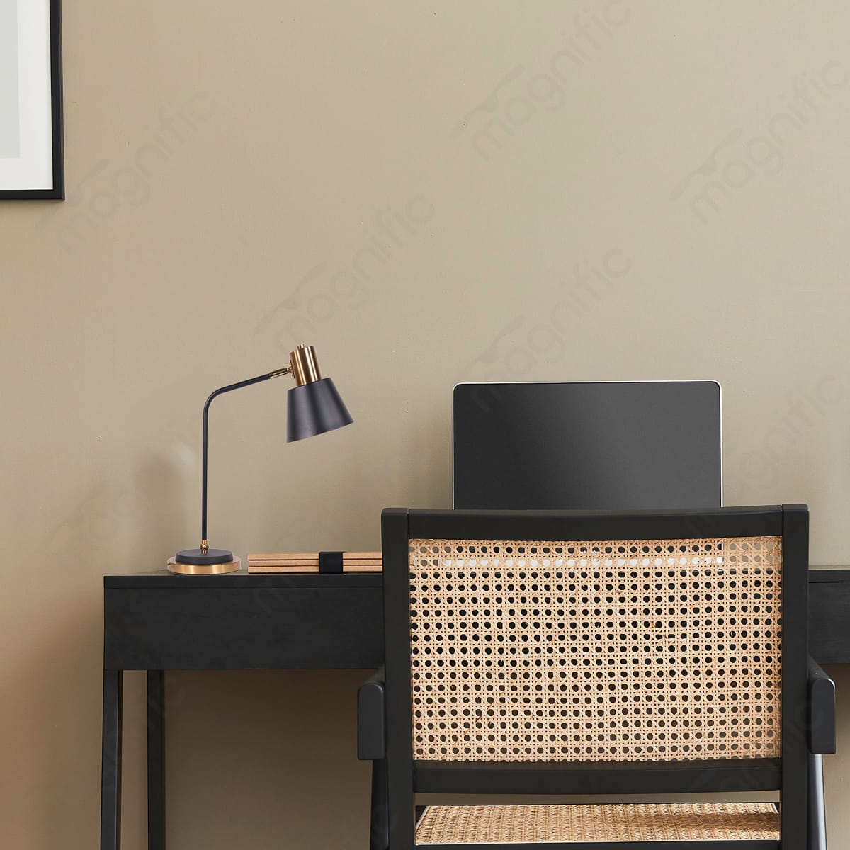 This Modern Black and Brass Desk Lamp features a matte black finish complemented by elegant brass accents, providing both style and functionality. Perfect for reading, studying, or adding a sophisticated touch to any desk or side table.