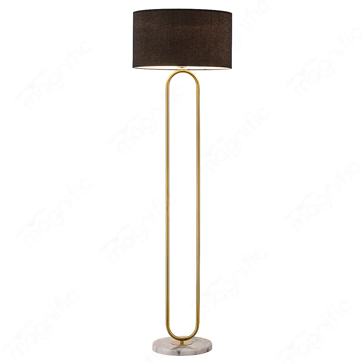 The Magnific floor lamp is a sophisticated lighting fixture designed to enhance the ambiance of contemporary or modern Indian homes, Its slender frame, finished in a rich antique brass, rises elegantly from a stable base, culminating in a classic black lampshade.