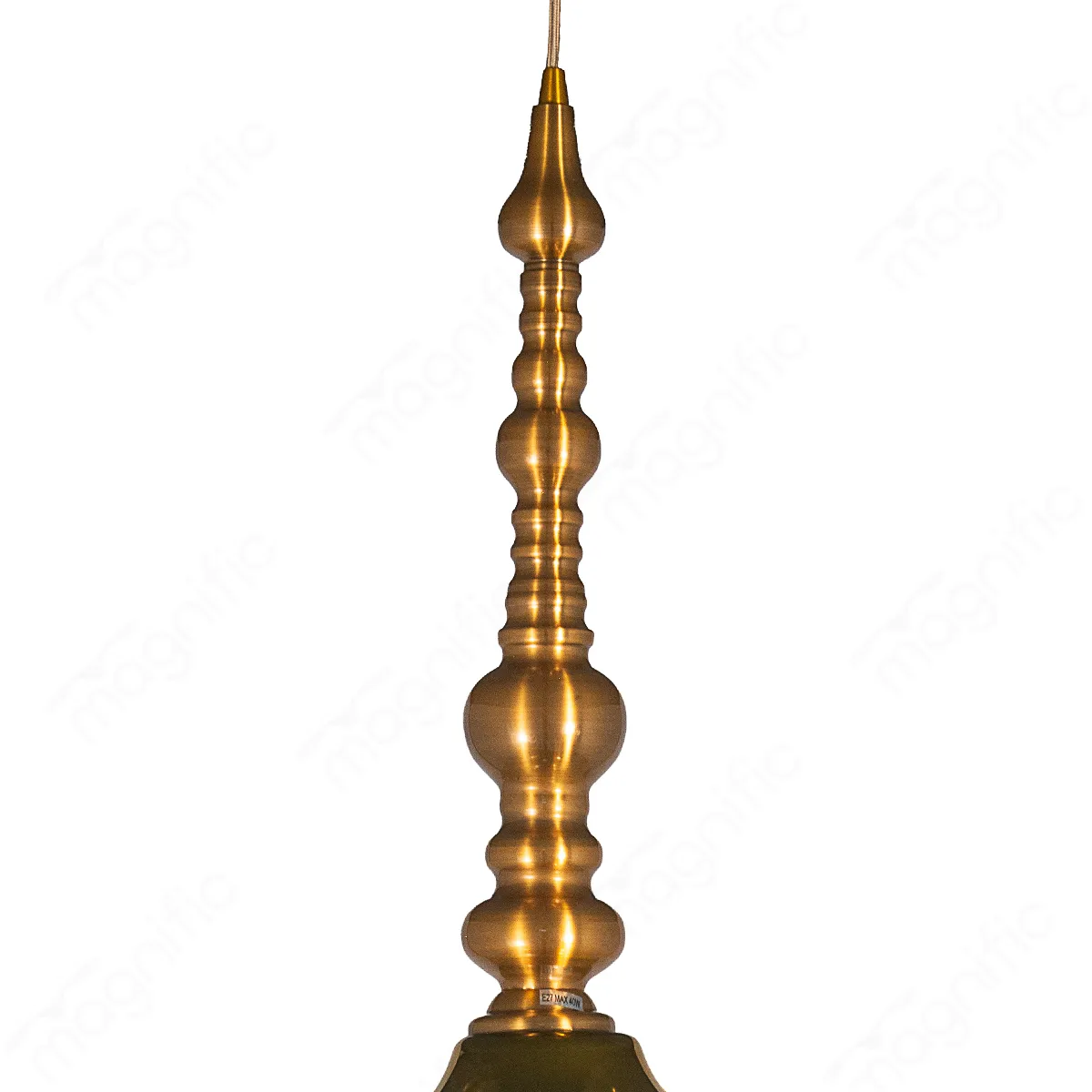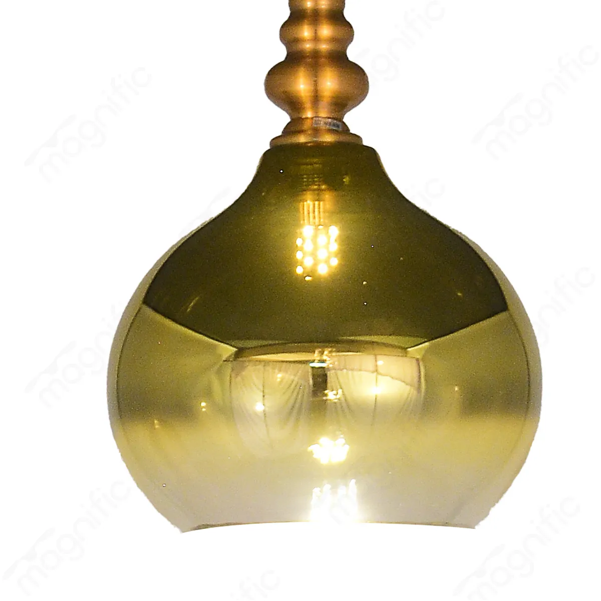 The Magnific pendant lights offers a contemporary design with a touch of vintage charm. Its polished glass sphere reflects light beautifully, enhanced by the antique brass hardware, providing a stylish illumination for various spaces.