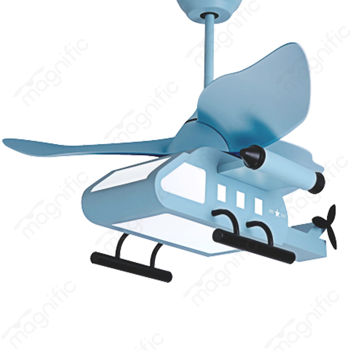 Let your child’s imagination take flight with the Magnific Aviator, This fun and functional 36-inch ceiling fan is designed to look like a playful helicopter, with sky-blue blades and body that add a touch of whimsy to any child’s room.