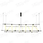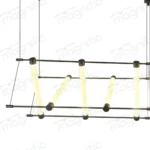 The Axis Angular Tube Grid Pendant is Magnific most architecturally rigorous fixture – a piece that draws its design language directly from the vocabulary of contemporary spatial design rather than traditional chandelier aesthetics. Spanning 1500mm (approx. 59″) in length, its welded matte black rectangular grid frame is suspended from a single black ceiling bracket via four tensioned steel wires, presenting a perfectly level, precisely engineered horizontal plane from which its LED tube elements descend.