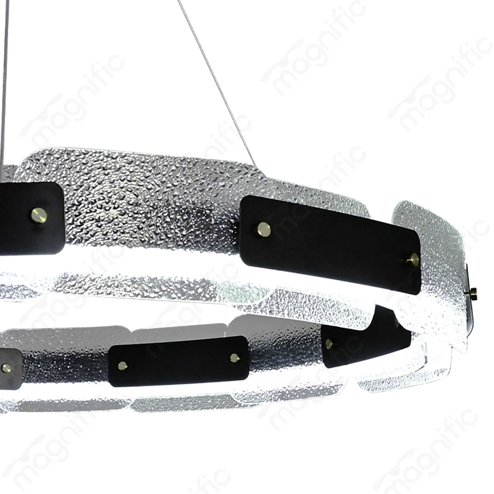 This large Black pendant light offers a modern look. Includes warm LED bulb. Ideal for living rooms, dining rooms. Bold statement piece with ample illumination.