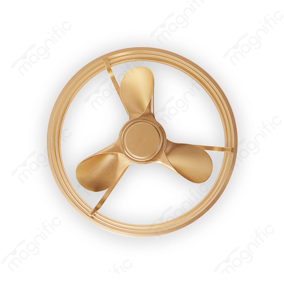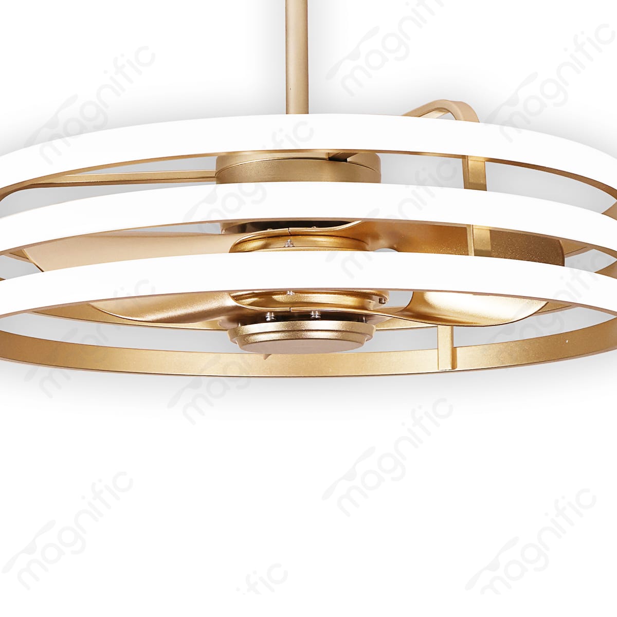 Enchant your living space with the Magnific Cindrella, a captivating 20-inch ceiling fan that redefines modern elegance. This unique designer fan boasts three sleek, French gold blades that effortlessly complement its stylish body. The fan’s standout feature is its three surrounding LED rings, which create a mesmerizing halo of light, adding a touch of glamour and ambiance to any room.