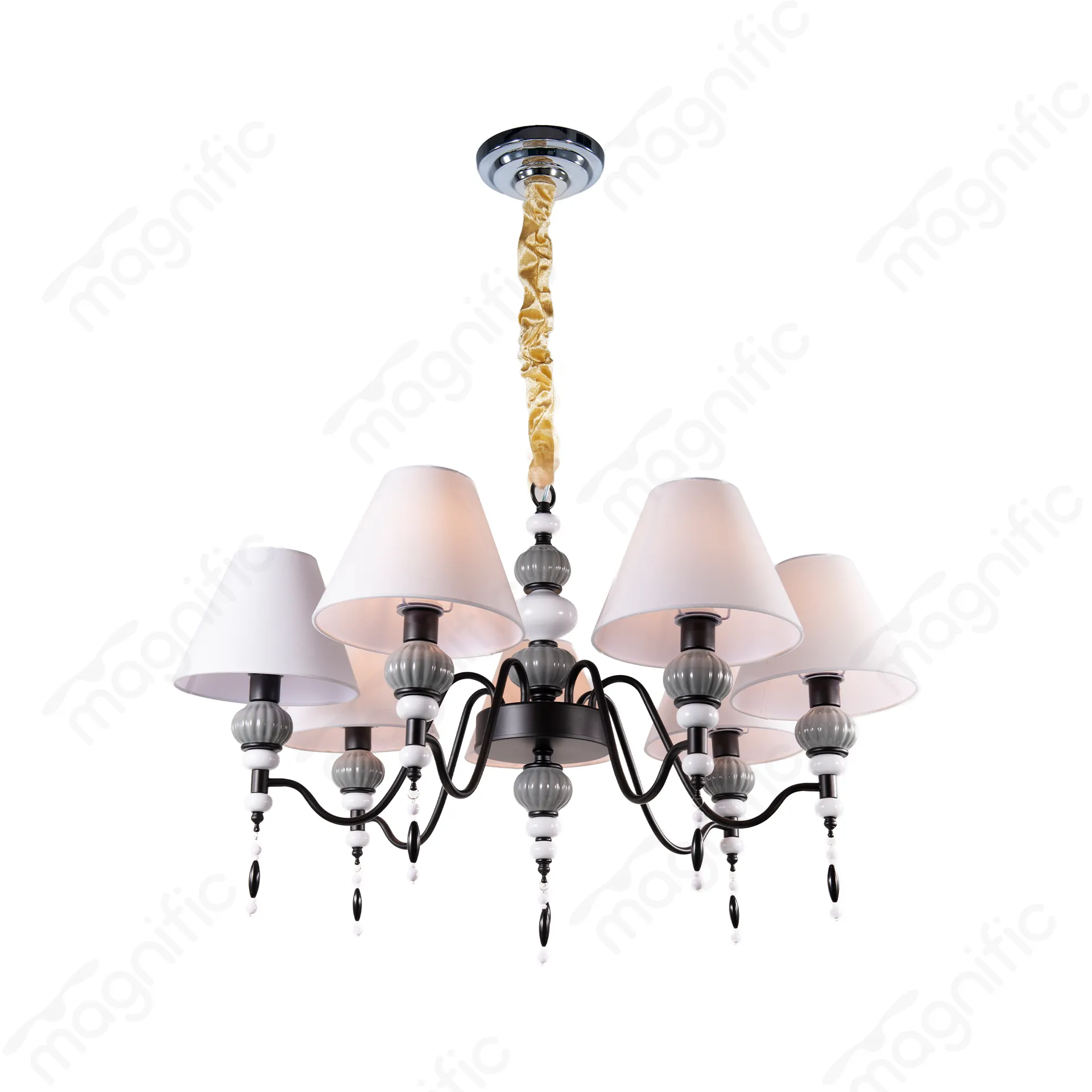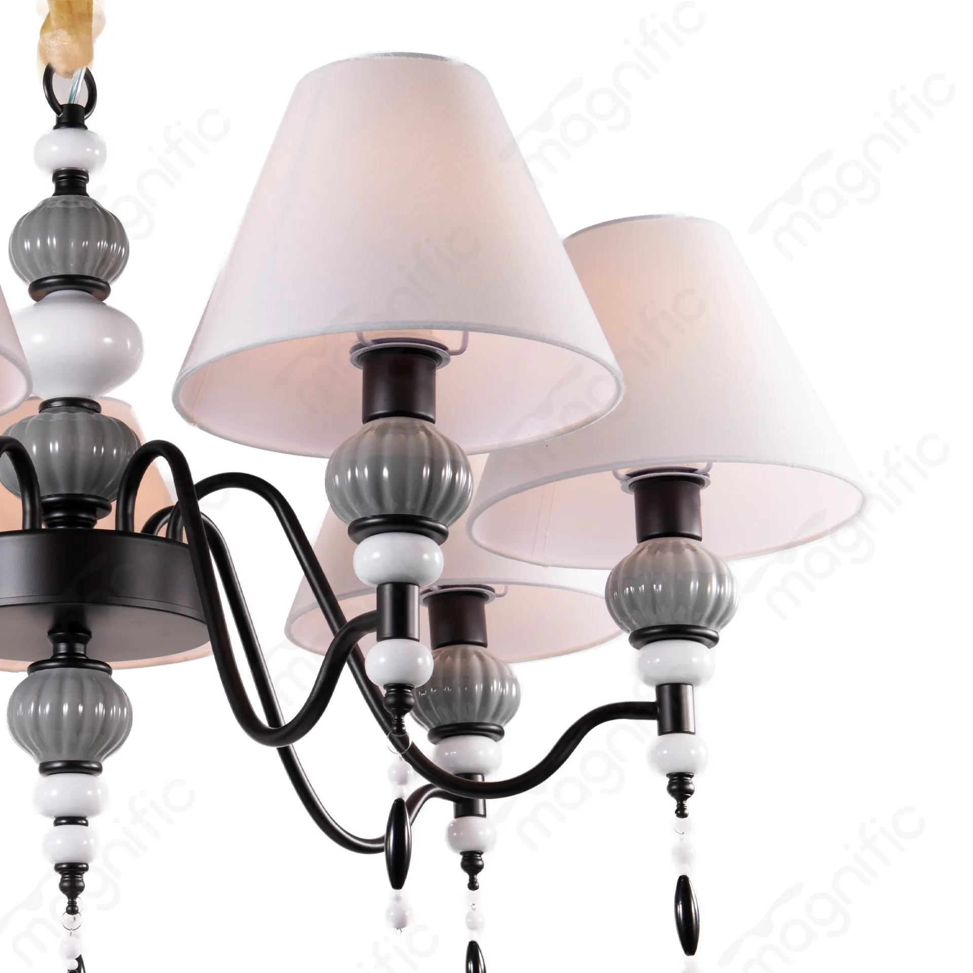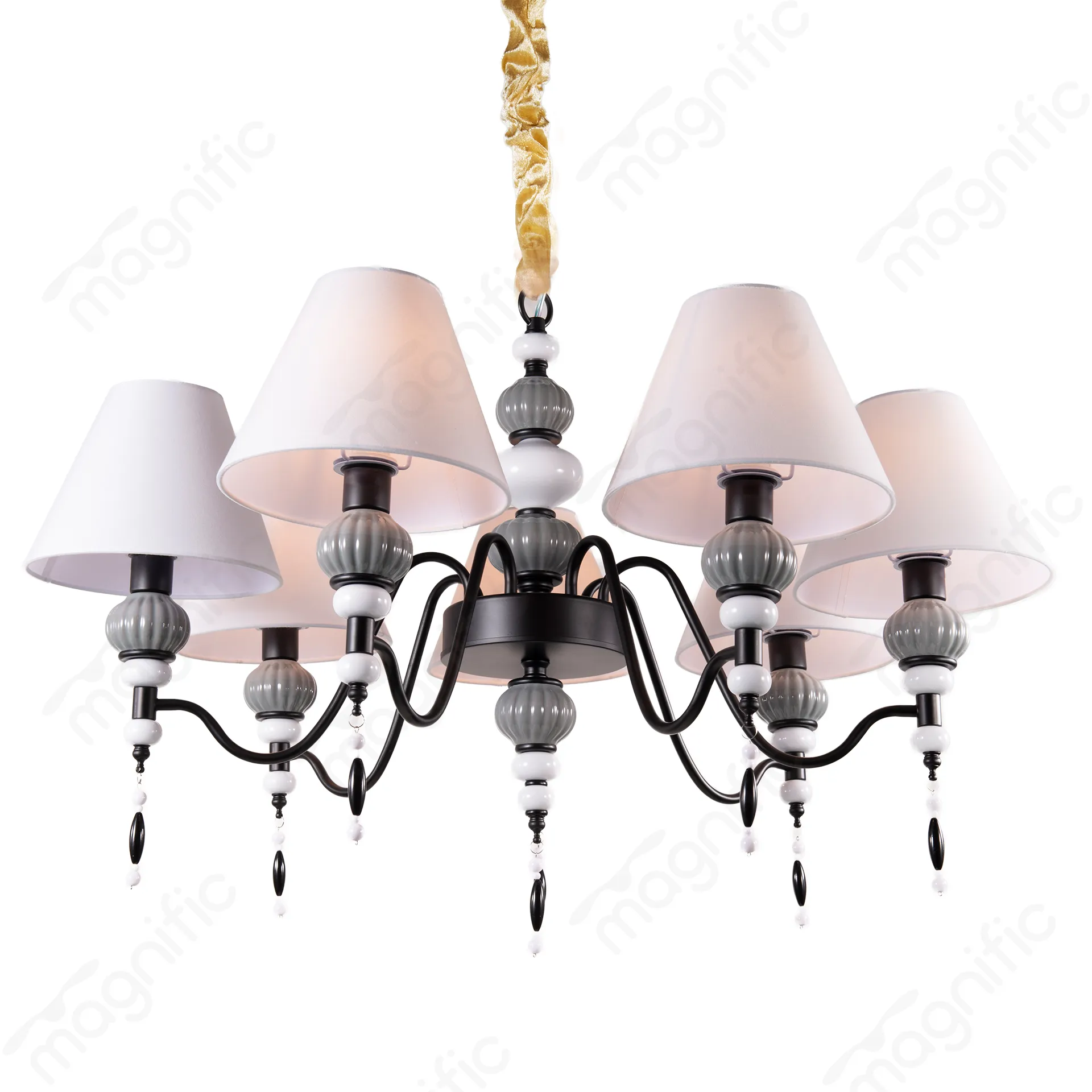 This classic chandelier features a beautiful matte black finish and white fabric shades, adding a touch of elegance and sophistication to your living room or dining room.