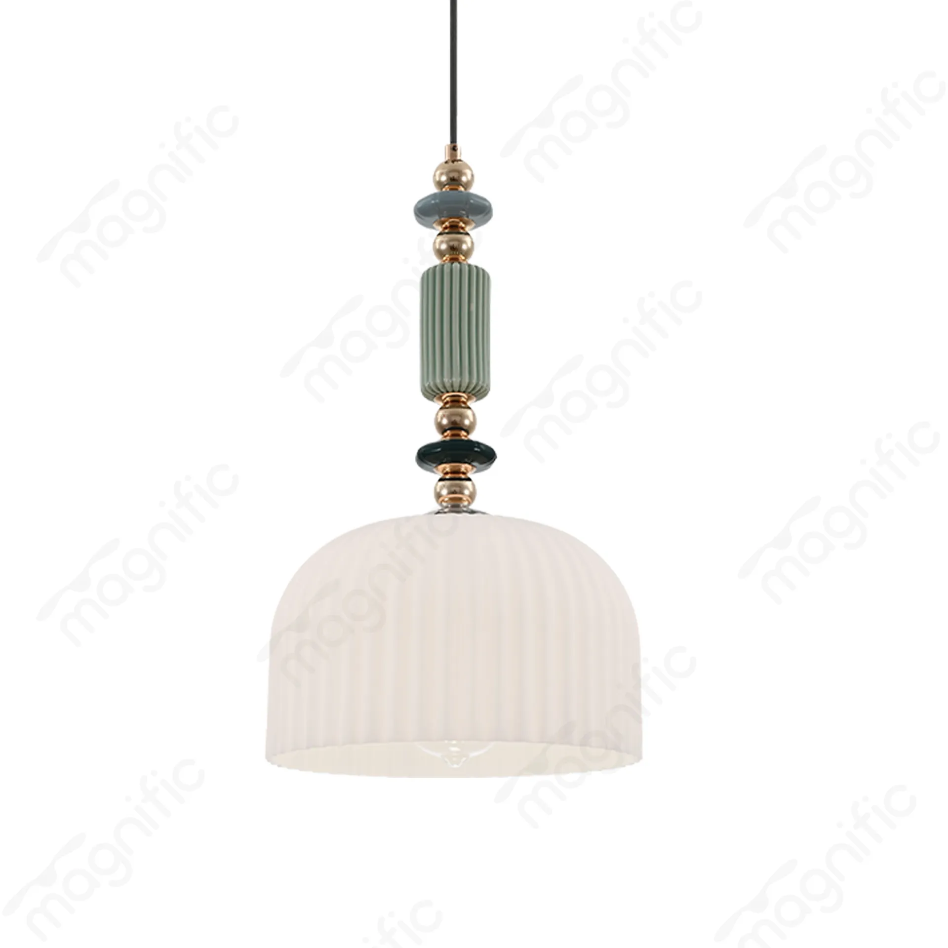This modern pendant light, featuring a ribbed white glass shade and stunning ceramic accents. The E27 holder allows for easy customization with your preferred light bulb. Enjoy the best budget-friendly decorative lighting options for architects and interior designers.