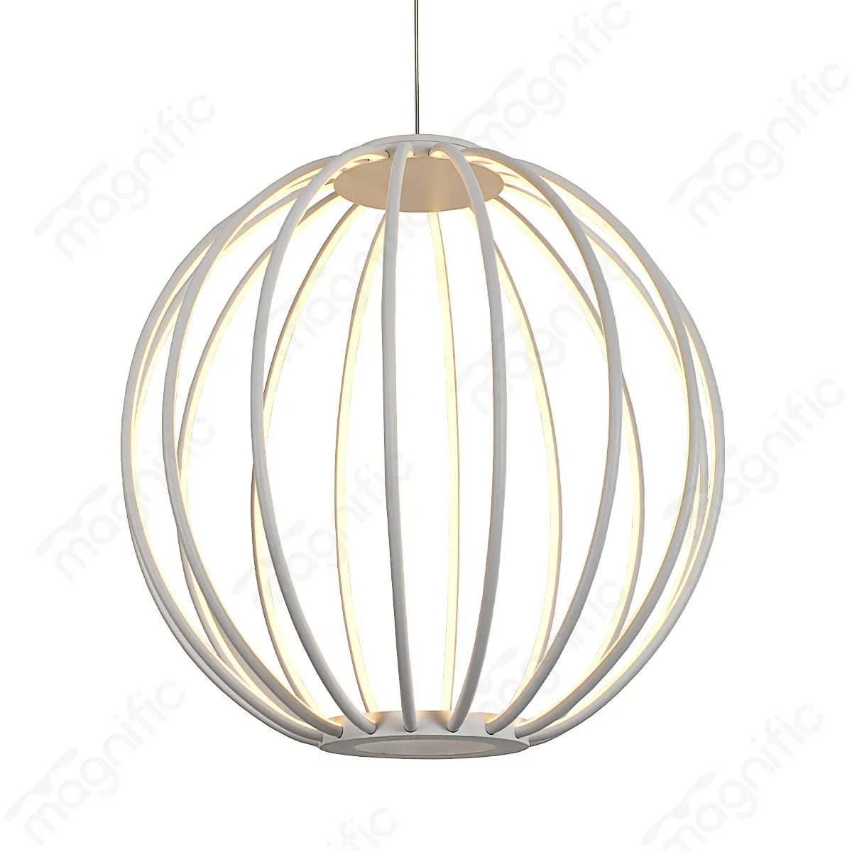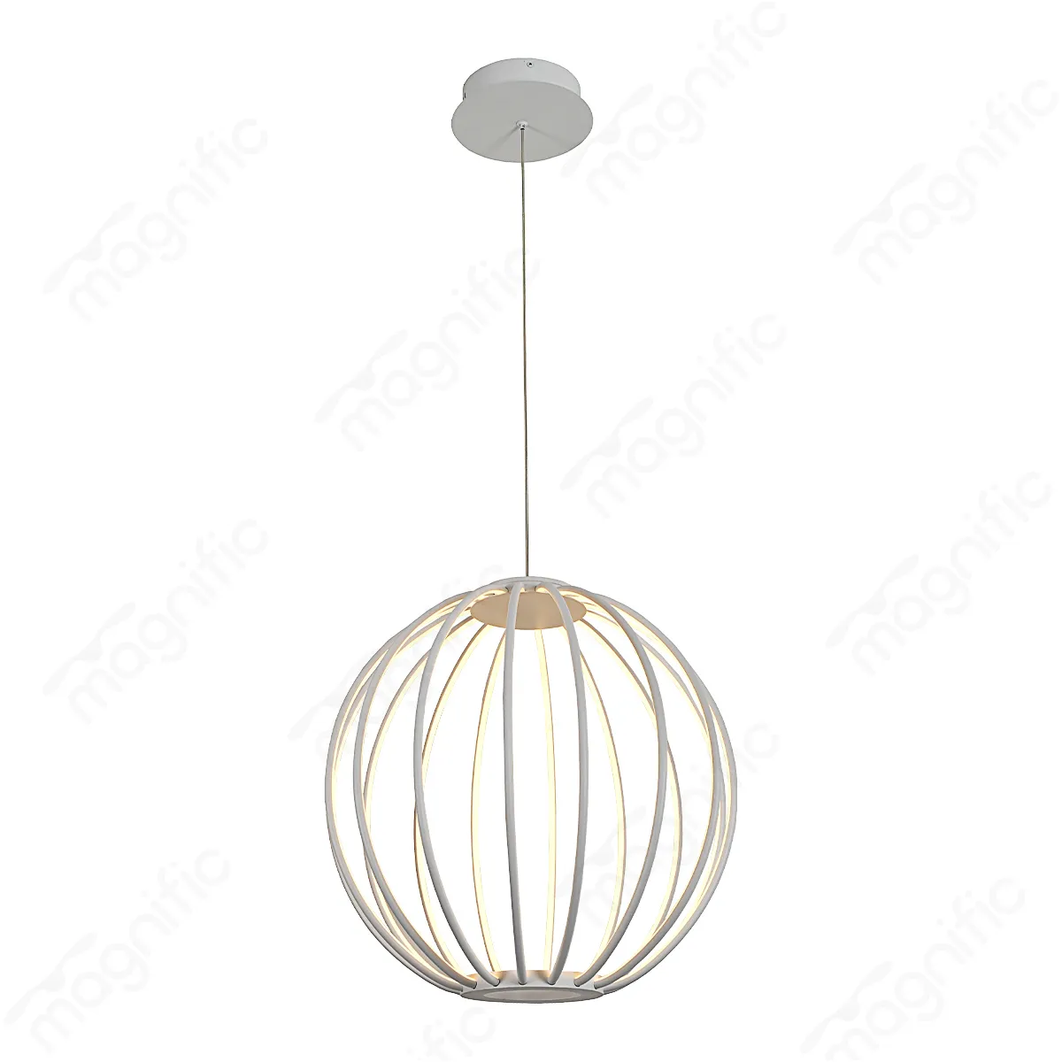 The Magnific Lighting Hanging light offers a refreshing take on modern illumination with its lightweight and visually intriguing spherical cage design. Crafted from white metal, the openwork framework creates a sense of airiness and allows the bright 55W LED to shine through unobstructed, filling your space with a vibrant yet diffused light .
