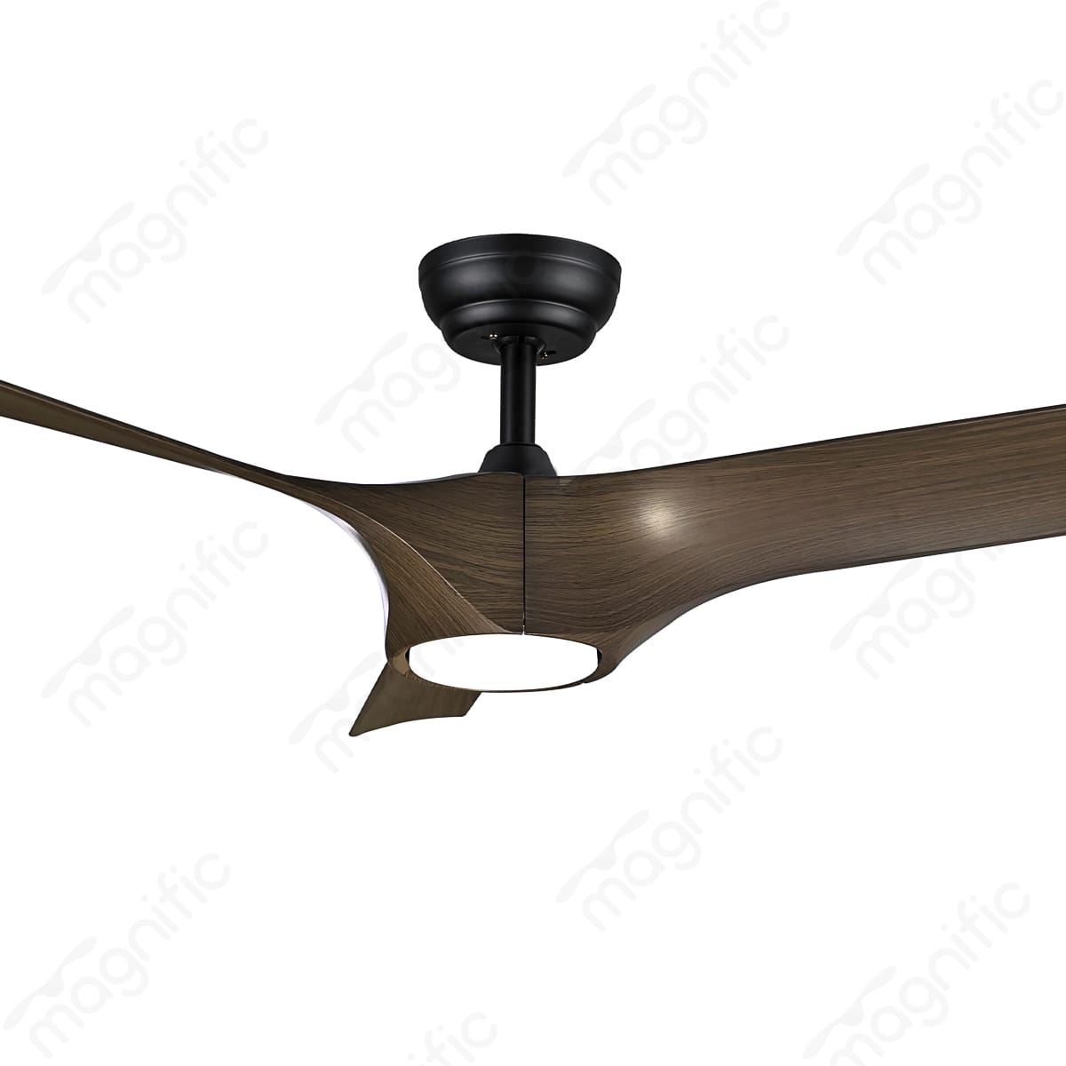 The Magnific Falcon brings modern style and function to your home. This 56 – inch ceiling fan features 3 sleek blades in matte black, matte white, or a beautiful matte wood finish to complement your décor. With a powerful DC motor that delivers airflow up to 9350 CFM, the Falcon keeps you comfortable year-round with a summer/winter option. The integrated LED light offers color-changing options for added ambiance, while the 6-speed remote control allows for effortless control. Magnific Falcon designer fan is ideal for medium to large rooms like bedrooms, living rooms, dining rooms, and home offices.