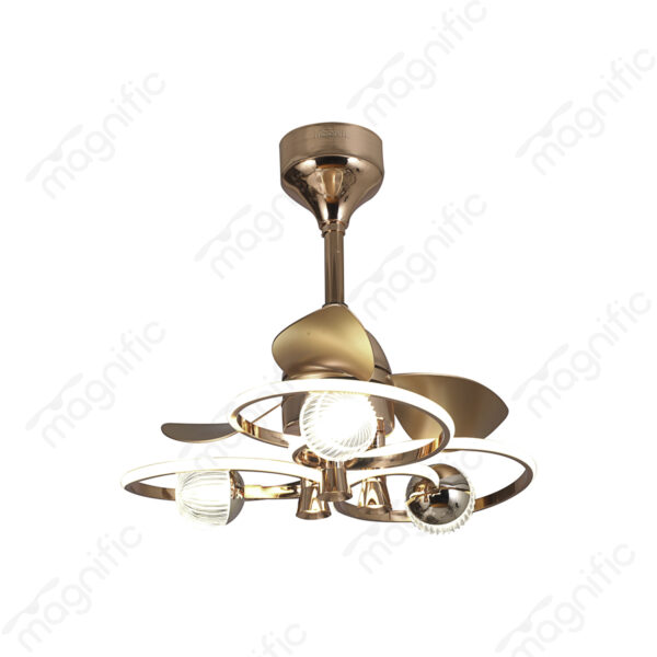 The Florence Ceiling Fan features a captivating Rosegold and Frenchgold finished body, creating a visually striking and modern aesthetic. The unique design with its distinctive shape and intricate details adds a touch of contemporary flair, seamlessly blending into modern interior styles. The fan’s aerodynamically designed blades ensure optimal airflow, providing a refreshing breeze without compromising on style.