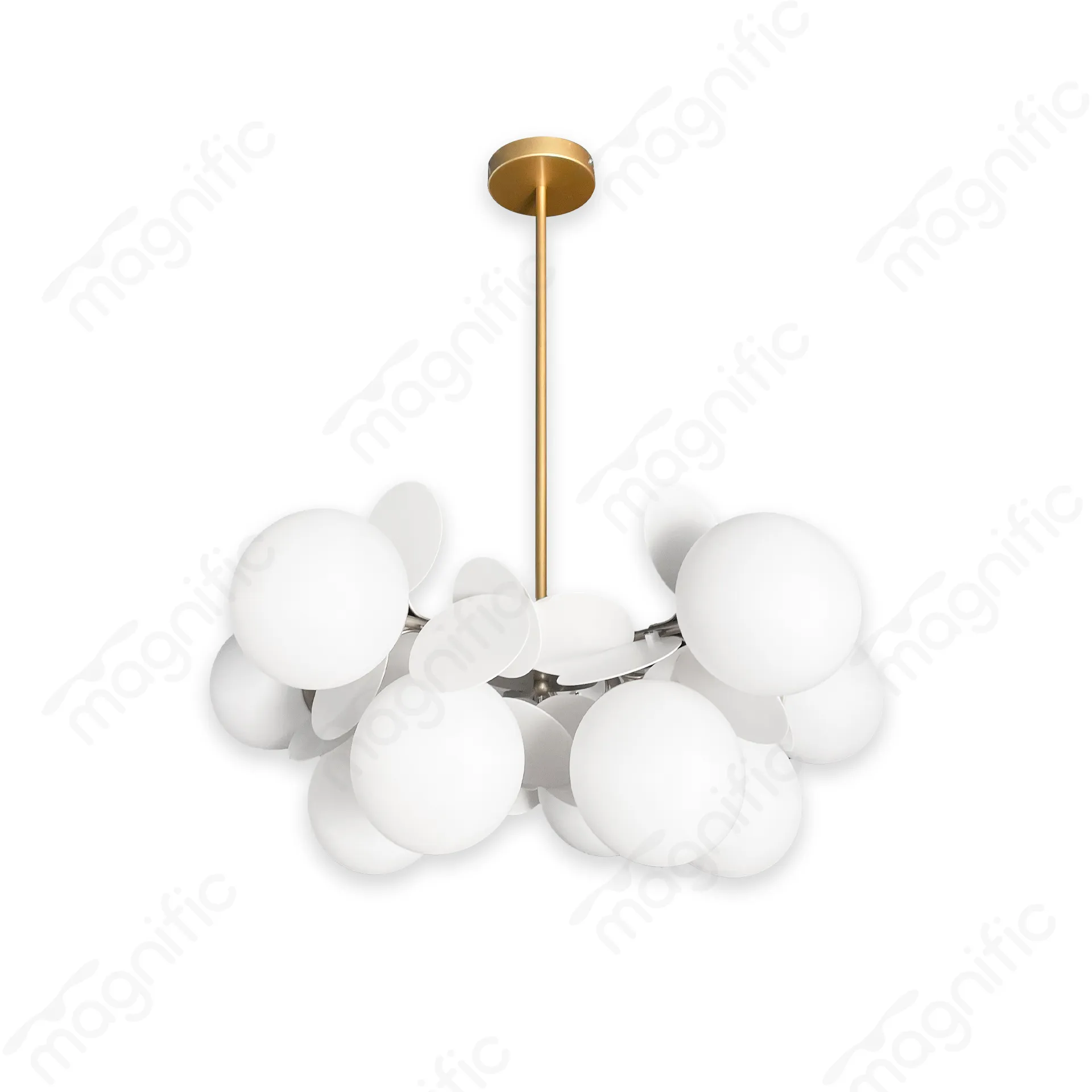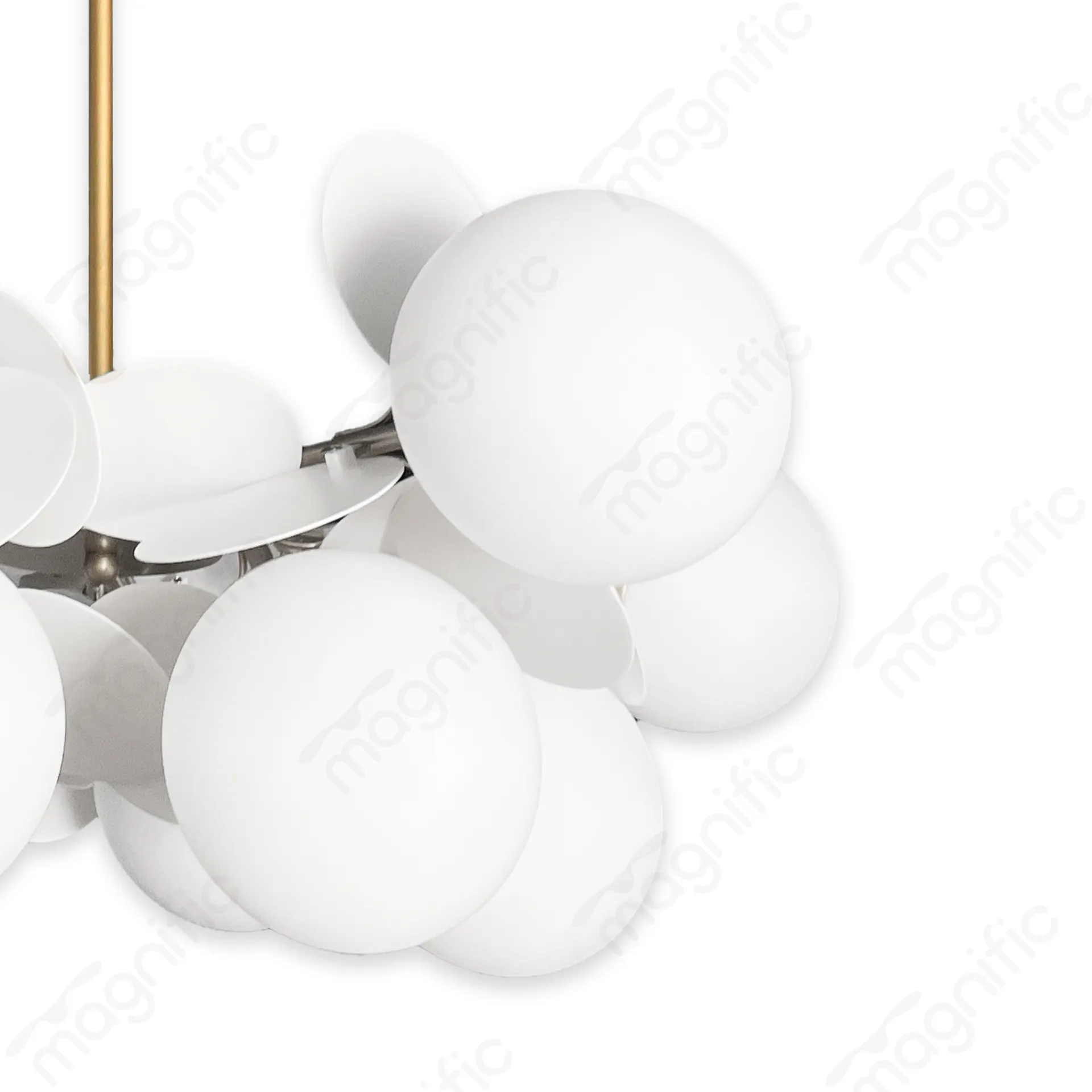 This Hanging light strikes the perfect balance between function and form. While providing ample light, the cascading white orbs elevate the experience to a new level of luxury. They are meticulously crafted to ensure lasting brilliance and light dispersion, even after years of use. The sturdy metal frame provides exceptional support for the orbs, ensuring this masterpiece endures as a radiant addition to your home.