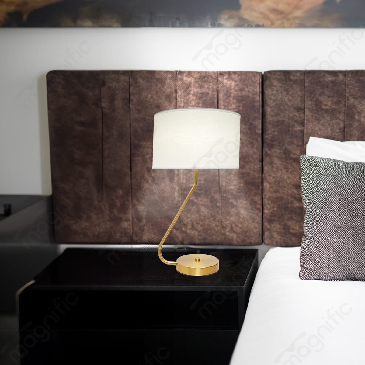 The Modern elegance to your home office or workspace with this stylish brushed gold table lamp. The lamp features a sleek, adjustable design with a beautiful lampshade, providing ample task lighting and a touch of elegance.