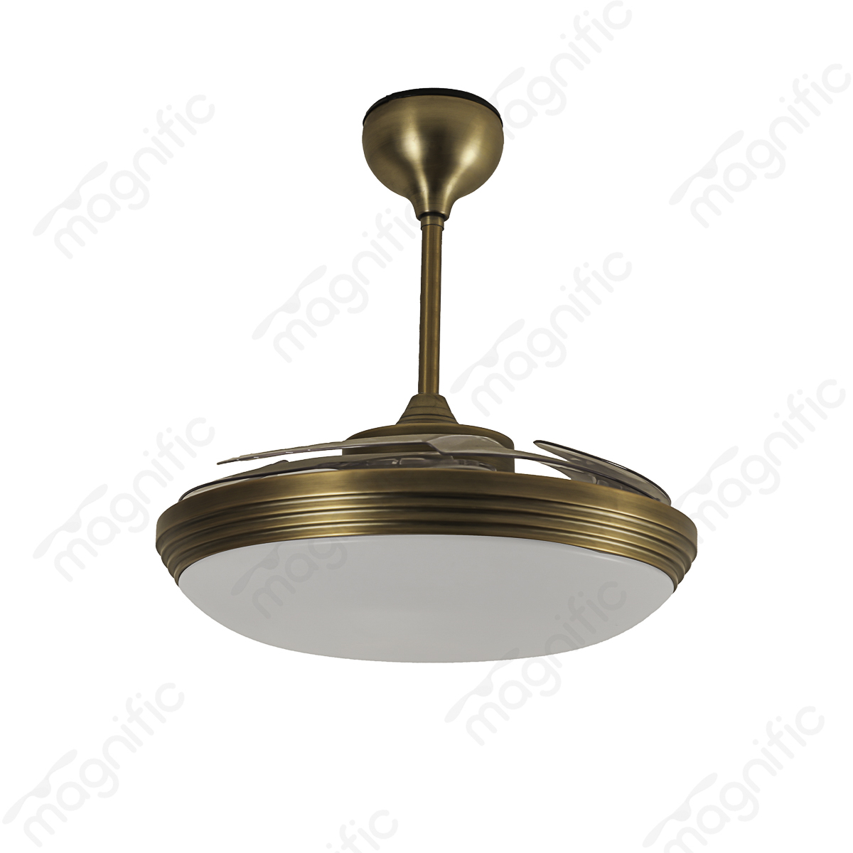 Experience the ultimate in versatility and style with the Magnific Jupiter. This innovative 42-inch ceiling fan features retractable blades that effortlessly transform it into a stunning chandelier when not in use. The transparent ABS blades gracefully fold away, revealing a sophisticated light fixture that illuminates your space with a warm and inviting glow.
