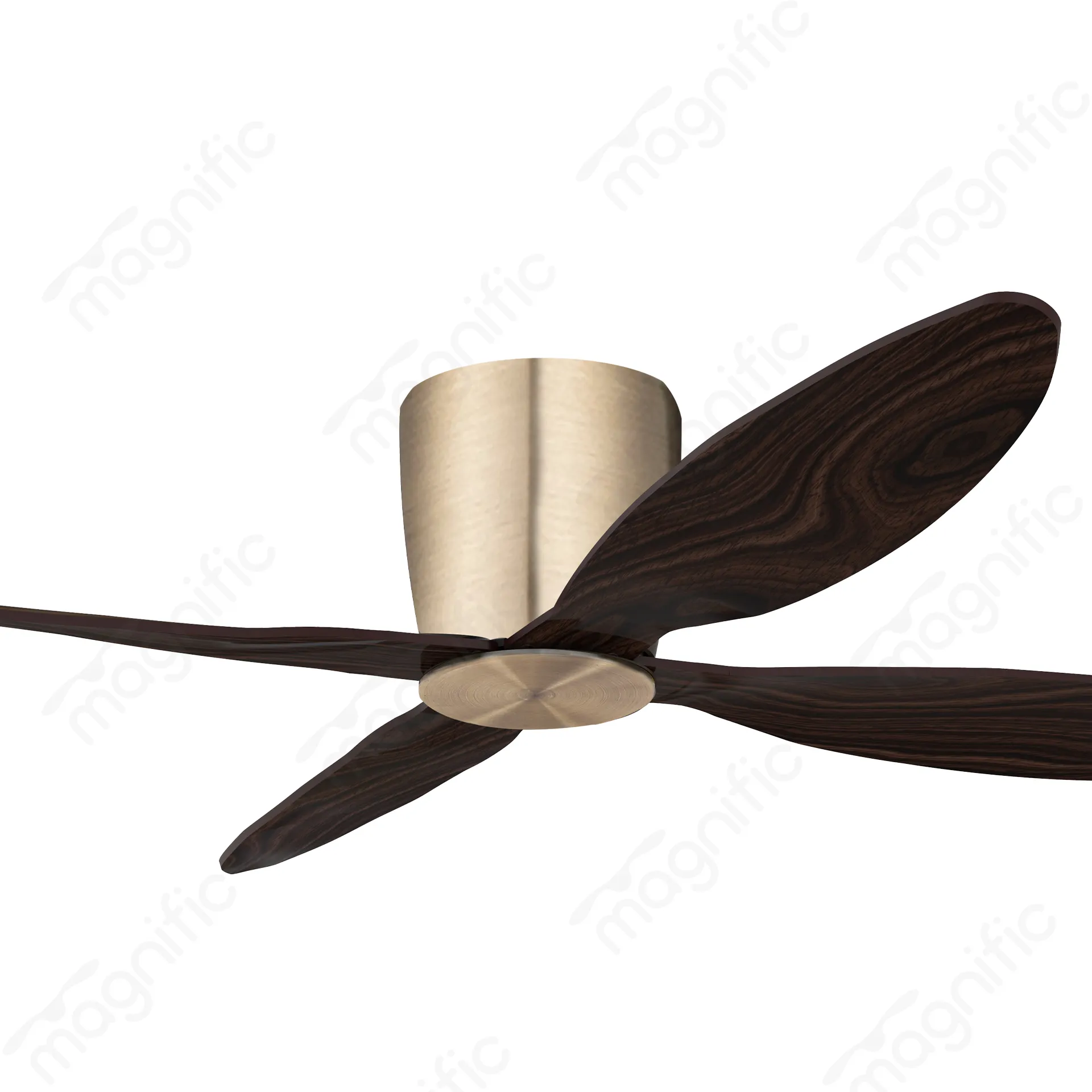 The Magnific Lilliput ceiling fan delivers powerful airflow and quiet operation, all in a compact design. Its sleek finish and walnut finished blades complement any interior style.
