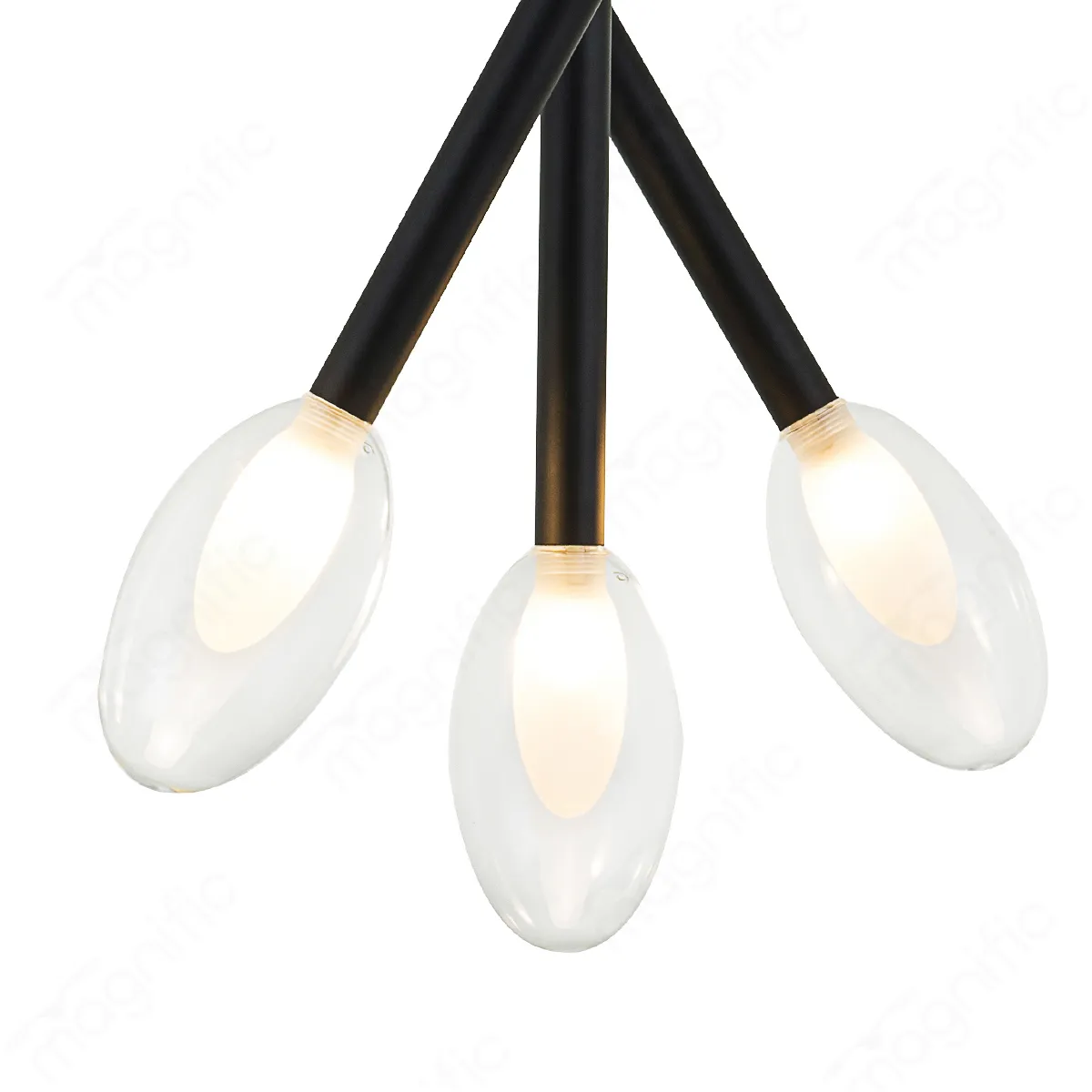 The Magnific Lighting series offers a range of modern pendant lights characterized by their minimalist design and sleek matte black finish. Each configuration features slender arms extending from a central point, culminating in frosted glass capsule diffusers that emit a soft and inviting glow from G9 bulbs.