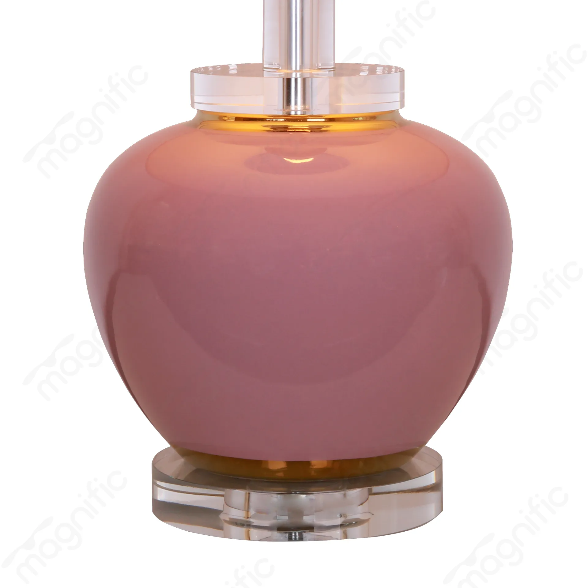 A touch of warmth and refined style with this modern table lamp, featuring a dusty rose ceramic base and a soft fabric shade. The combination creates a cozy and inviting atmosphere that enhances any living space. Perfectly sized for bedside tables, desks, or accent corners, this lamp offers soft and diffused lighting ideal for both relaxation and task lighting.