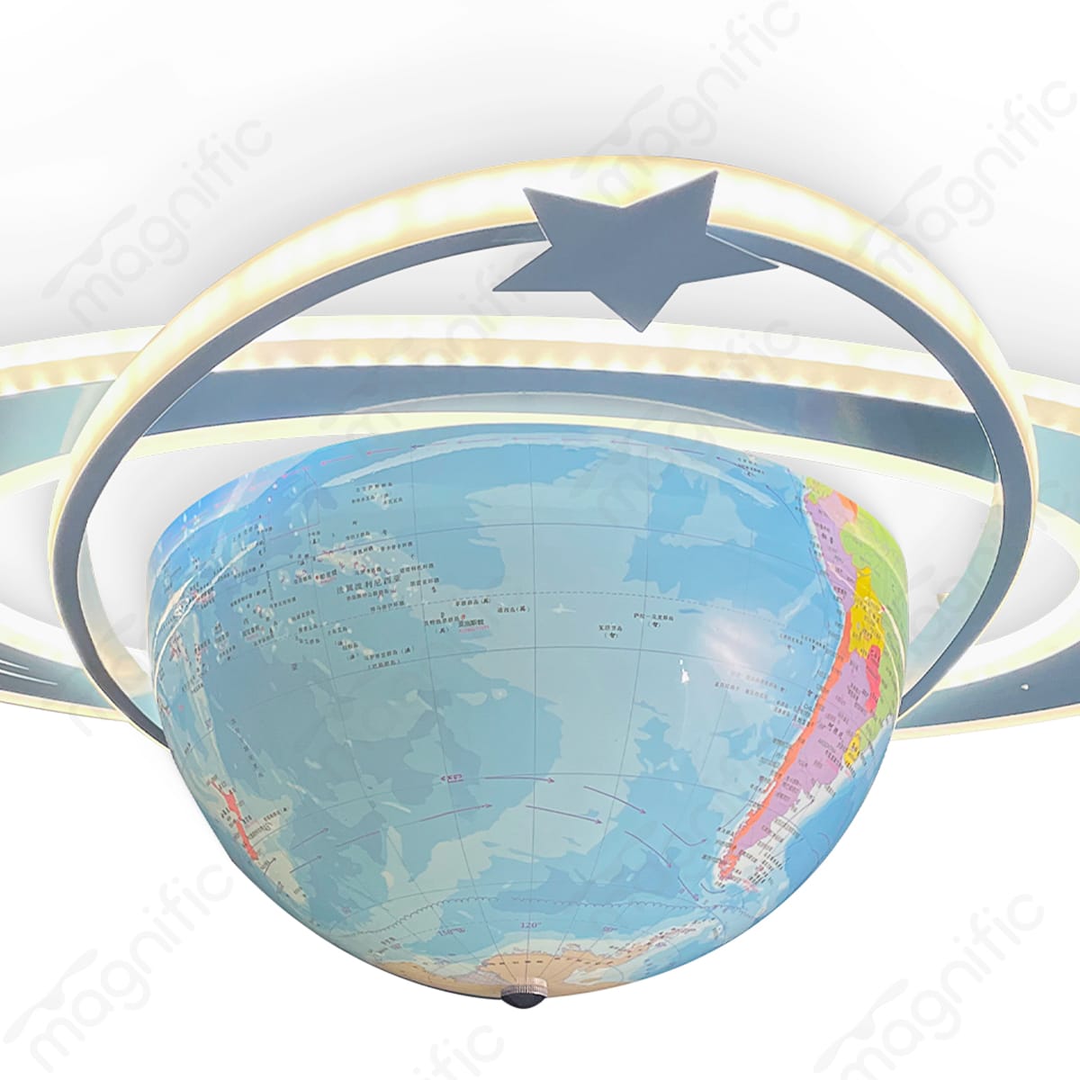 This modern ceiling light, featuring a globe design with rings and stars. The LED Light allows for easy customization with your preferred light bulb. Enjoy the best budget-friendly decorative lighting options for architects and interior designers.