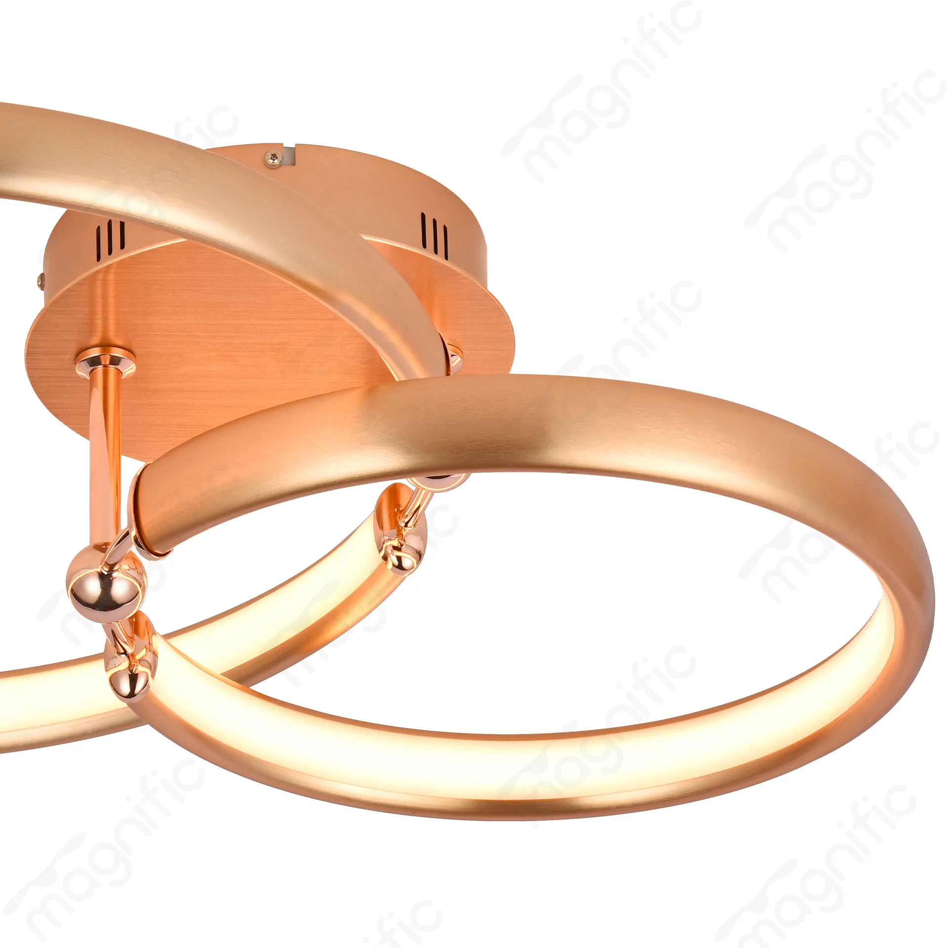 This modern Luxury ceiling light, The overlapping rings and brushed gold finish create a sophisticated ambiance, while the warm LED light adds a touch of luxury. The sleek design and energy-efficient LED lighting make it a versatile choice for any room.