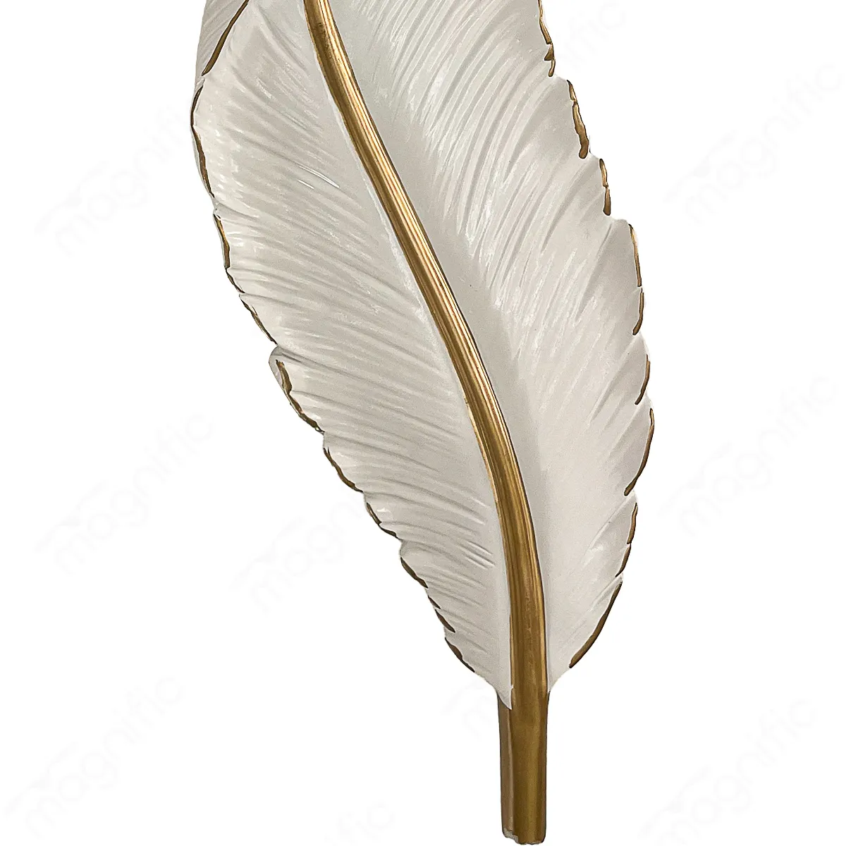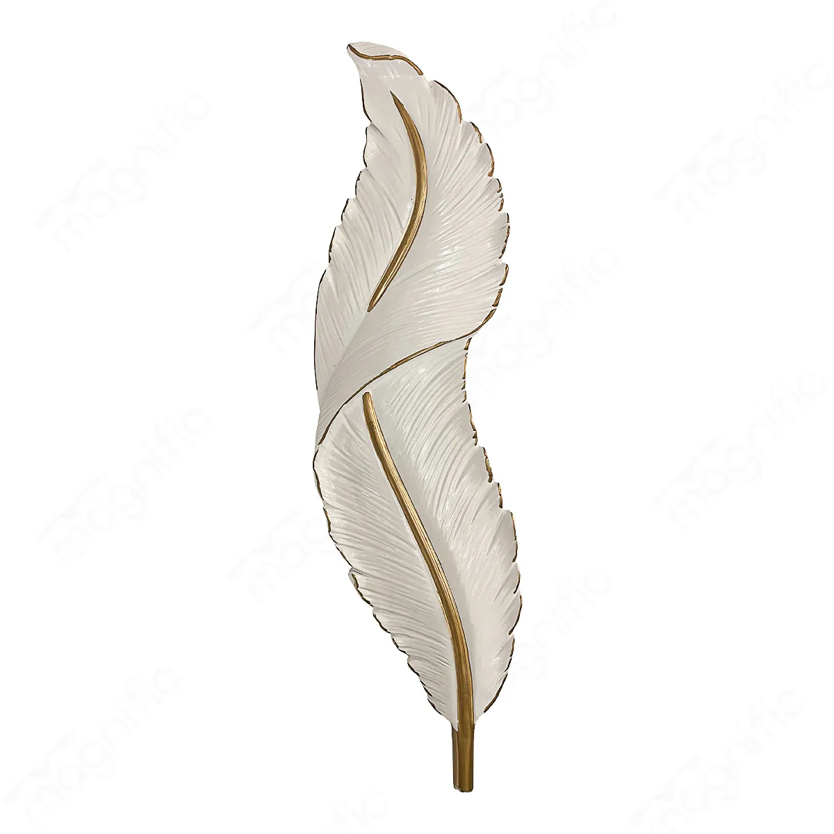 The Magnific Feather wall light, This captivating fixture features a stylized feather design, gracefully rendered in a combination of luxurious gold and pristine white. The delicate curves and intricate detailing evoke a sense of lightness and sophistication, making it a unique and eye-catching addition to any interior space. This wall light serves as both a subtle source of ambient illumination and a distinctive decorative element, enhancing the aesthetic appeal of your walls.