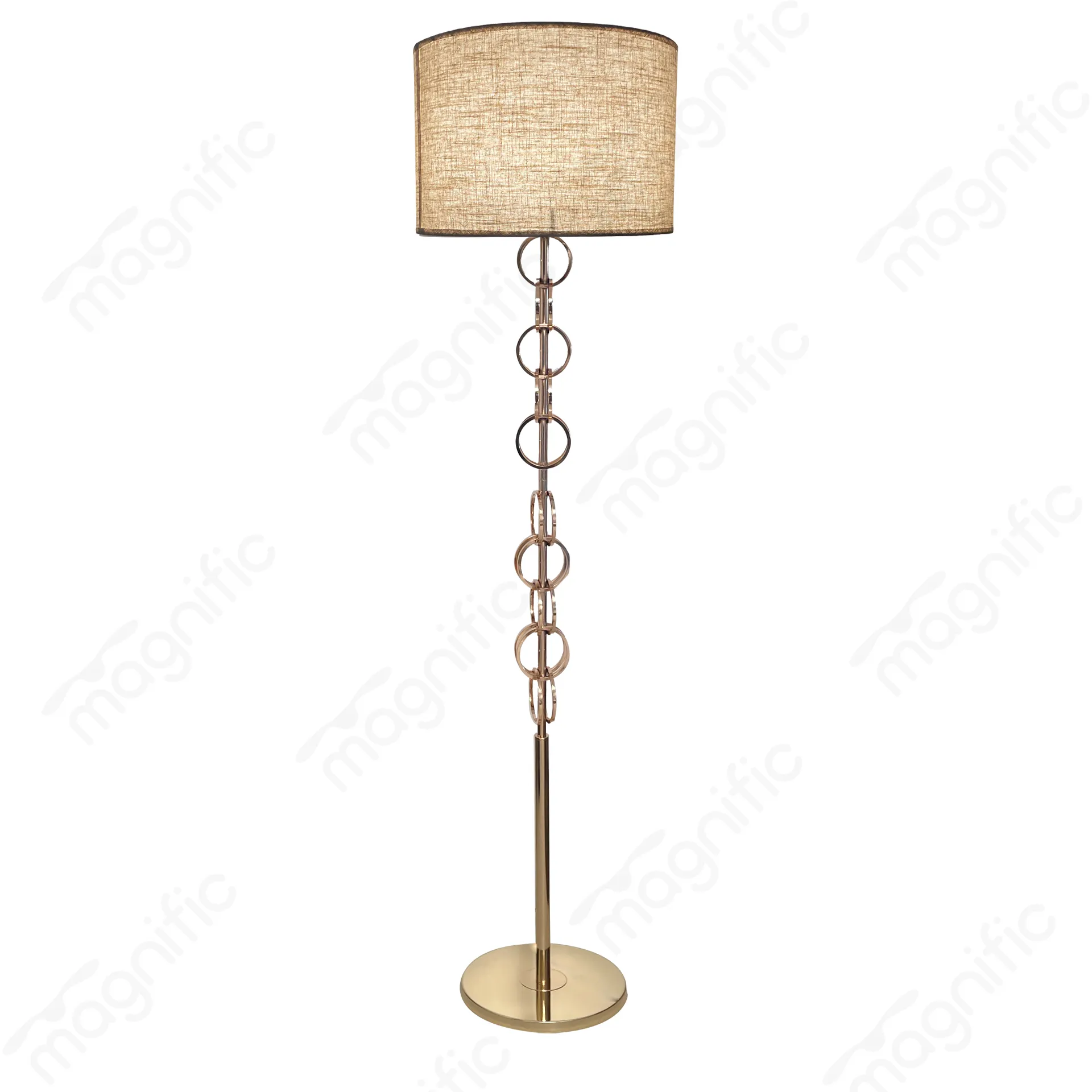 The Magnific Modern Gold Finished floor lamp, This gold-finished lamp offers a blend of modern style and functional lighting for any room. Its modern design and gold finish make it a standout piece that can serve as a focal point or complement existing decor.
