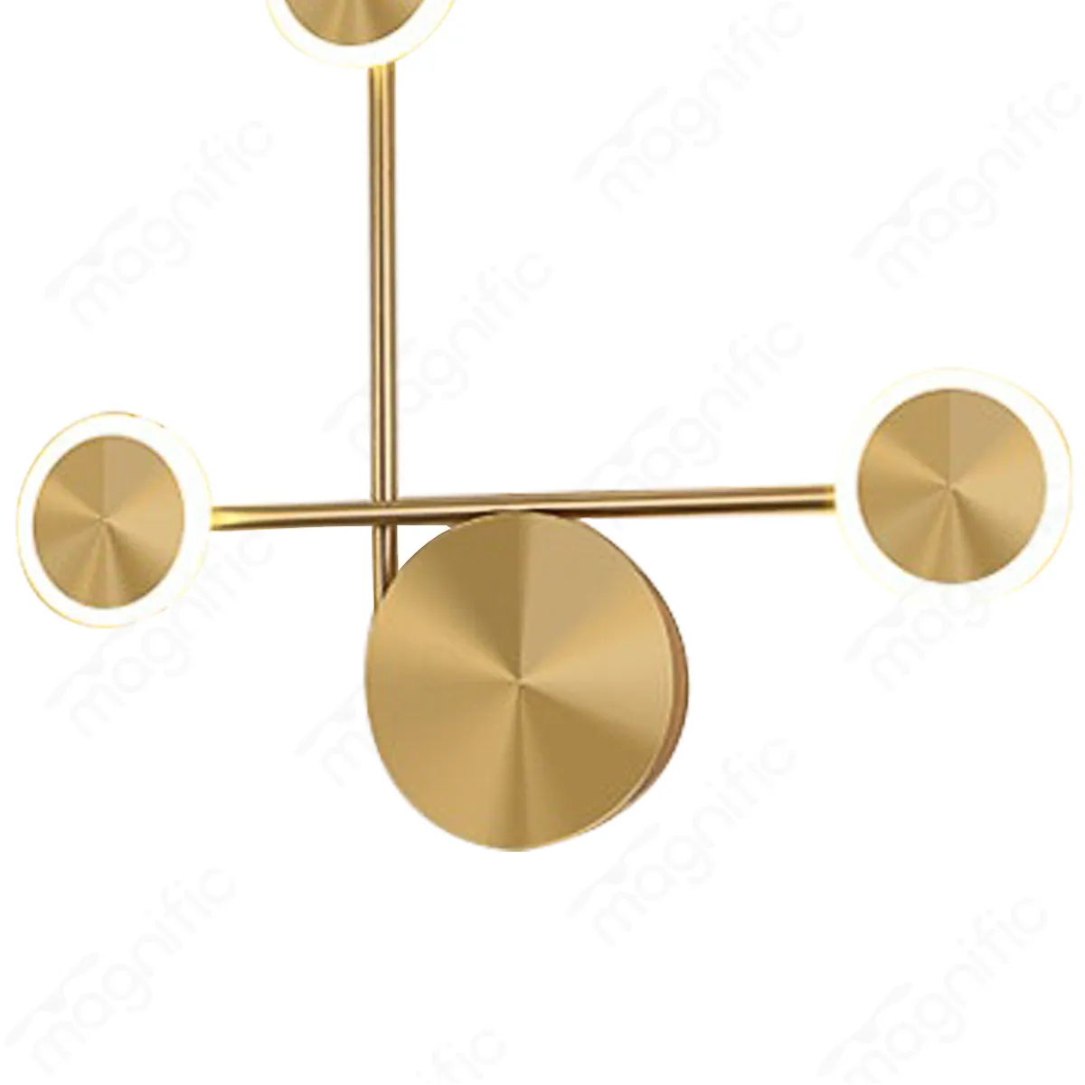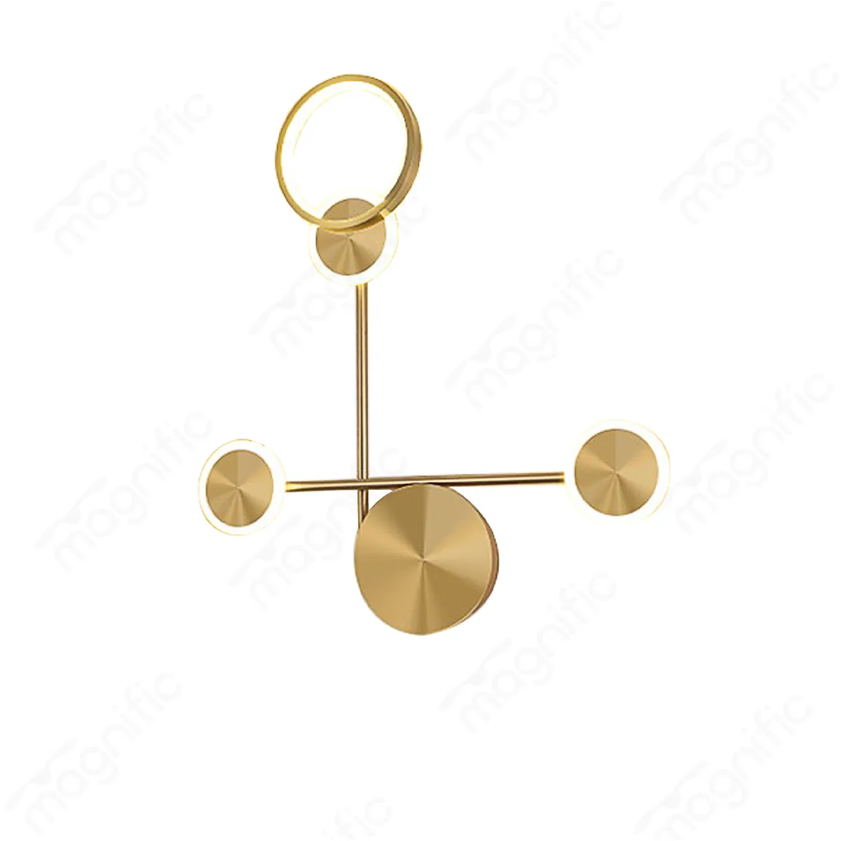 The modern and versatile Magnific Lighting LED wall light. Featuring a sleek gold abstract geometric frame with illuminated circular elements, this fixture provides a warm LED light . Its unique design makes it ideal for hallways, living rooms, studies, or as a stylish addition to any contemporary space. The combination of the rich gold finish and the abstract geometric form creates a sophisticated and artistic ambiance.