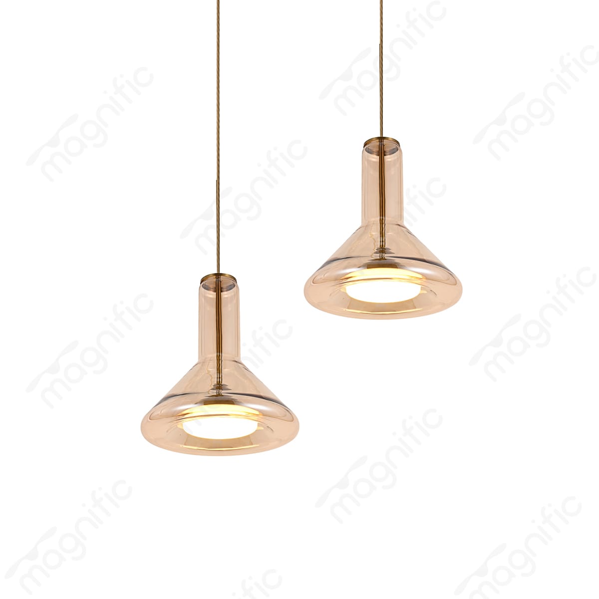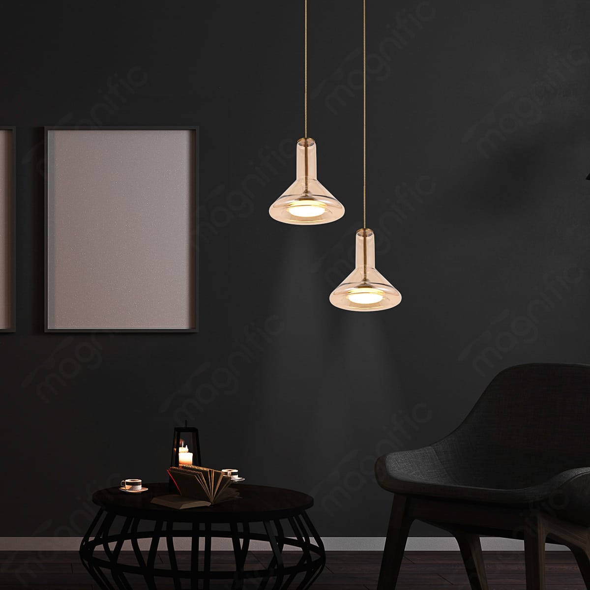 Designed to complement modern interiors, this pendant light is a perfect choice for architects and interior designers seeking unique and artistic lighting solutions. The funnel-shaped shades and gold finish create a captivating focal point that can enhance the overall aesthetic of any space.