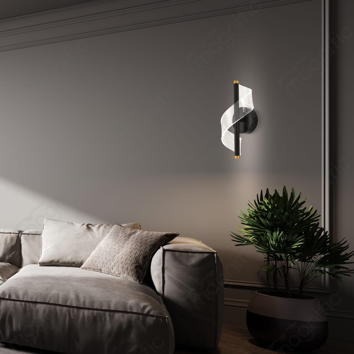 The bold contrast of the black finish creates a visually intriguing focal point, showcasing a perfect blend of contemporary and classic styles. This designer wall sconce is sure to turn heads and elevate the ambiance of your space.