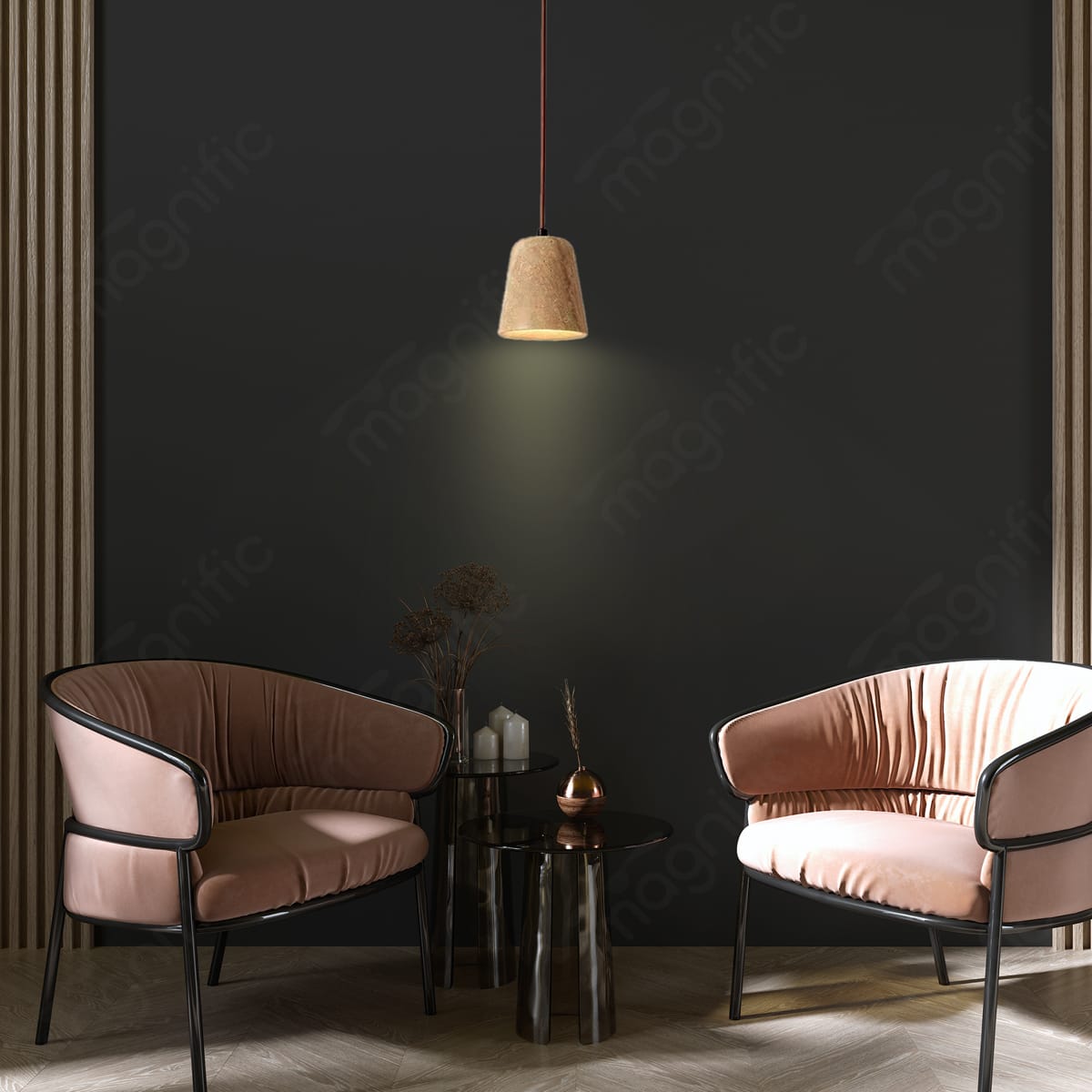 This unique fixture features a natural stone look and a warm wood finish. The E27 light source provides bright illumination, making it perfect for hanging over a kitchen island or breakfast bar. The natural materials and earthy tones create a warm and inviting atmosphere.