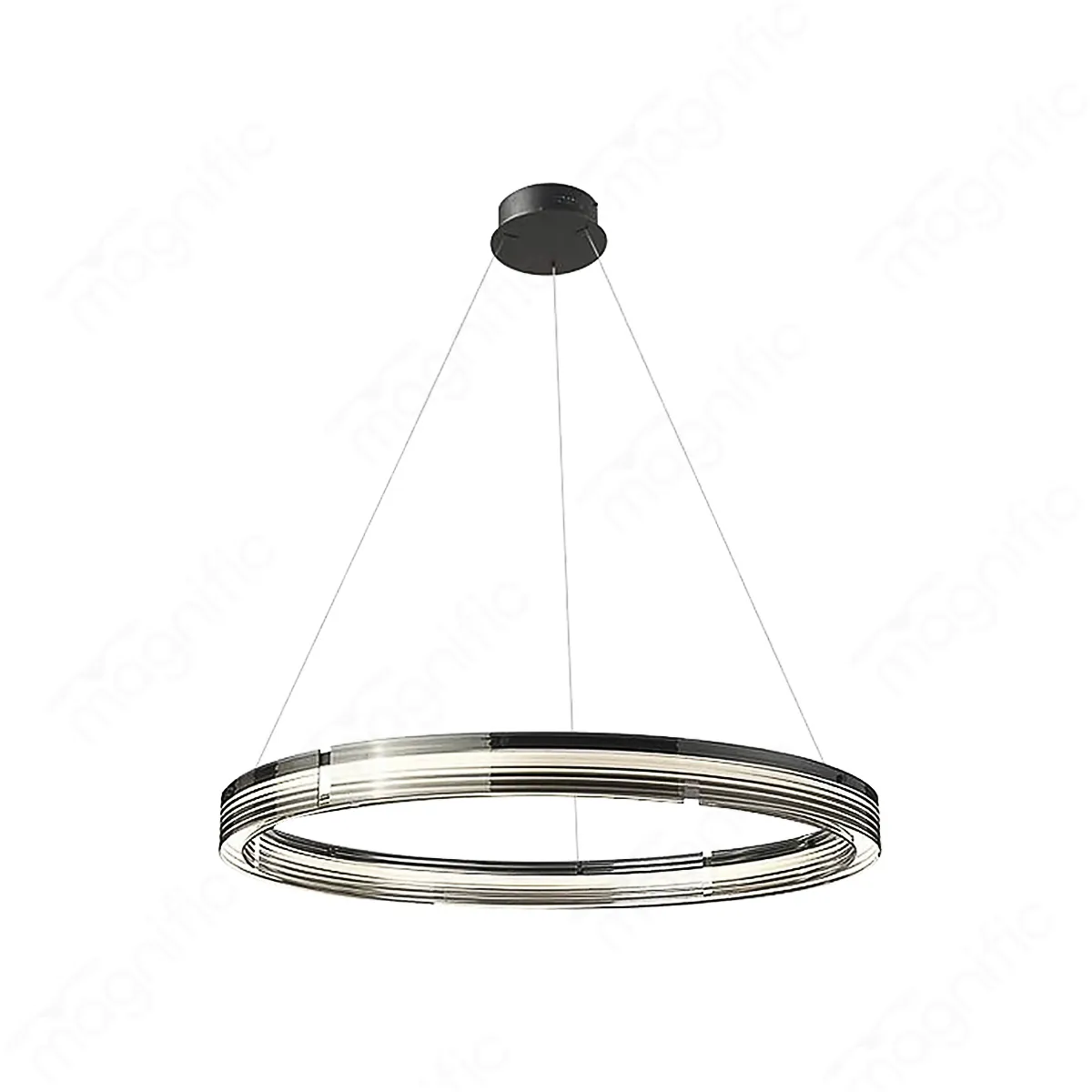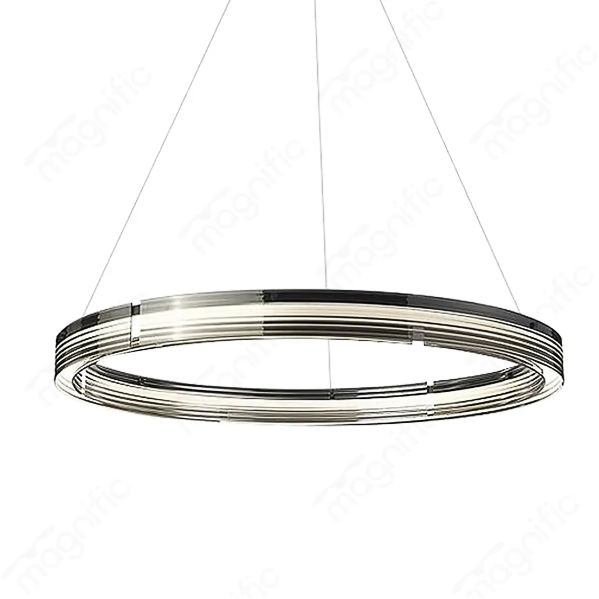 The Magnific Hanging Lighting, This modern smoky grey ring pendant, suspended by delicate cables, emits a customizable warm, natural, or cool LED glow, perfect for minimalist and contemporary spaces.