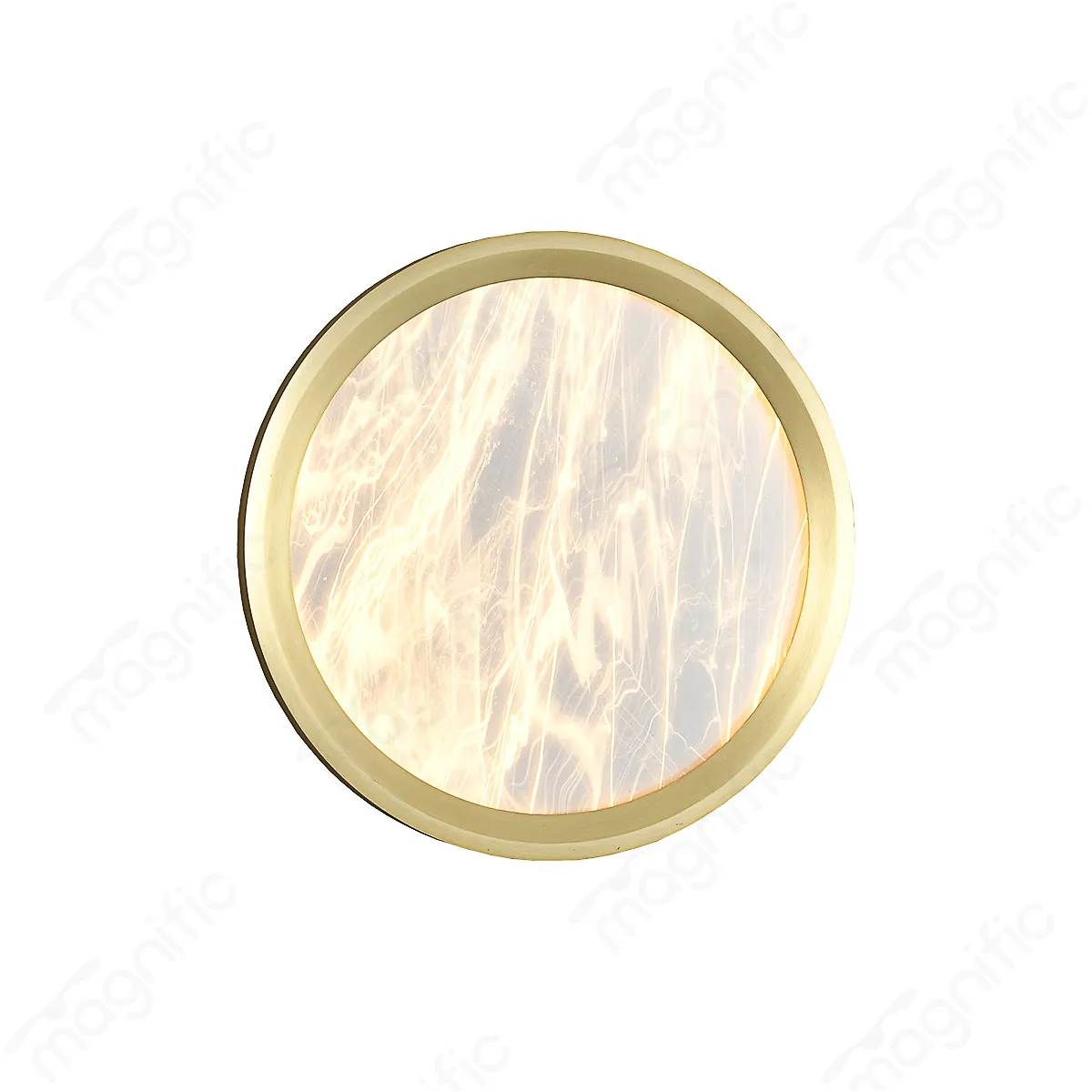 The Magnific round LED wall light, This sleek fixture features a circular design with a sophisticated gold finish that beautifully frames the diffused LED light source. Its minimalist aesthetic ensures it complements a wide range of interior styles, adding a subtle touch of elegance to any wall. This wall light serves as both a gentle source of ambient illumination and a refined decorative element, enhancing the overall warmth and style of your living spaces.