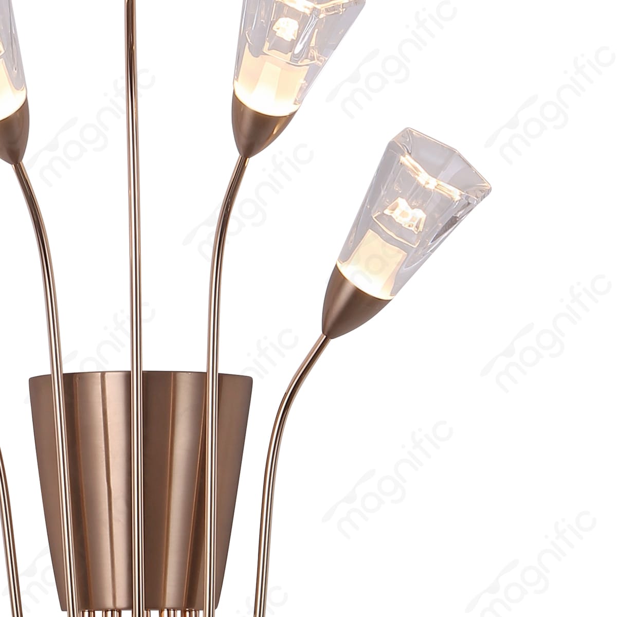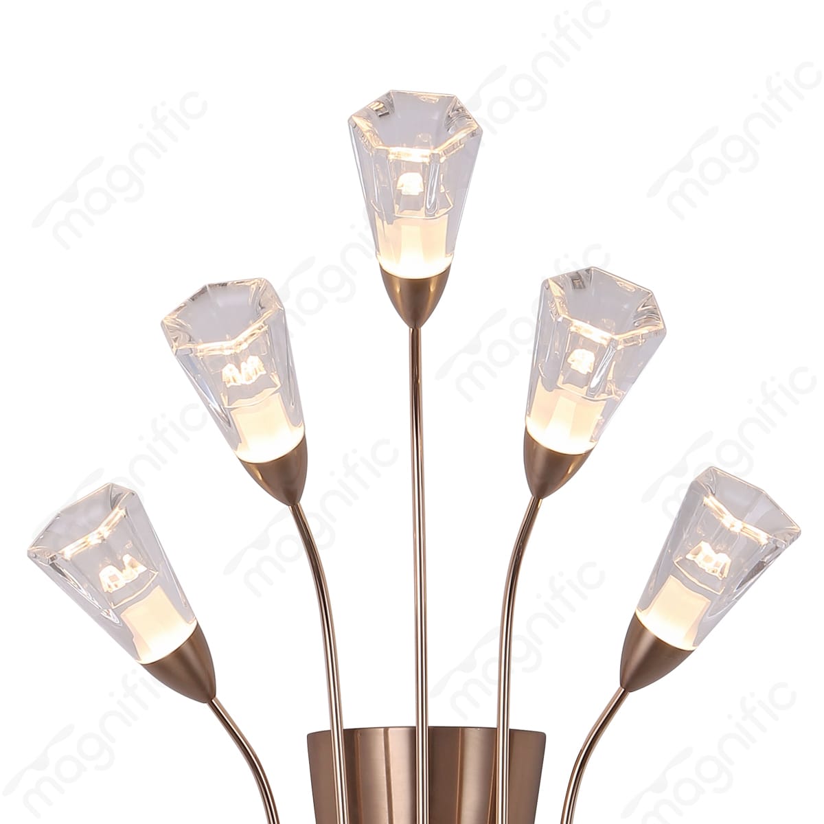 This modern wall light is inspired by the beauty of nature. The delicate glass shades resemble flower petals, creating a captivating and visually striking piece. The gold finish adds a touch of luxury and sophistication, making it a perfect complement to any interior style.