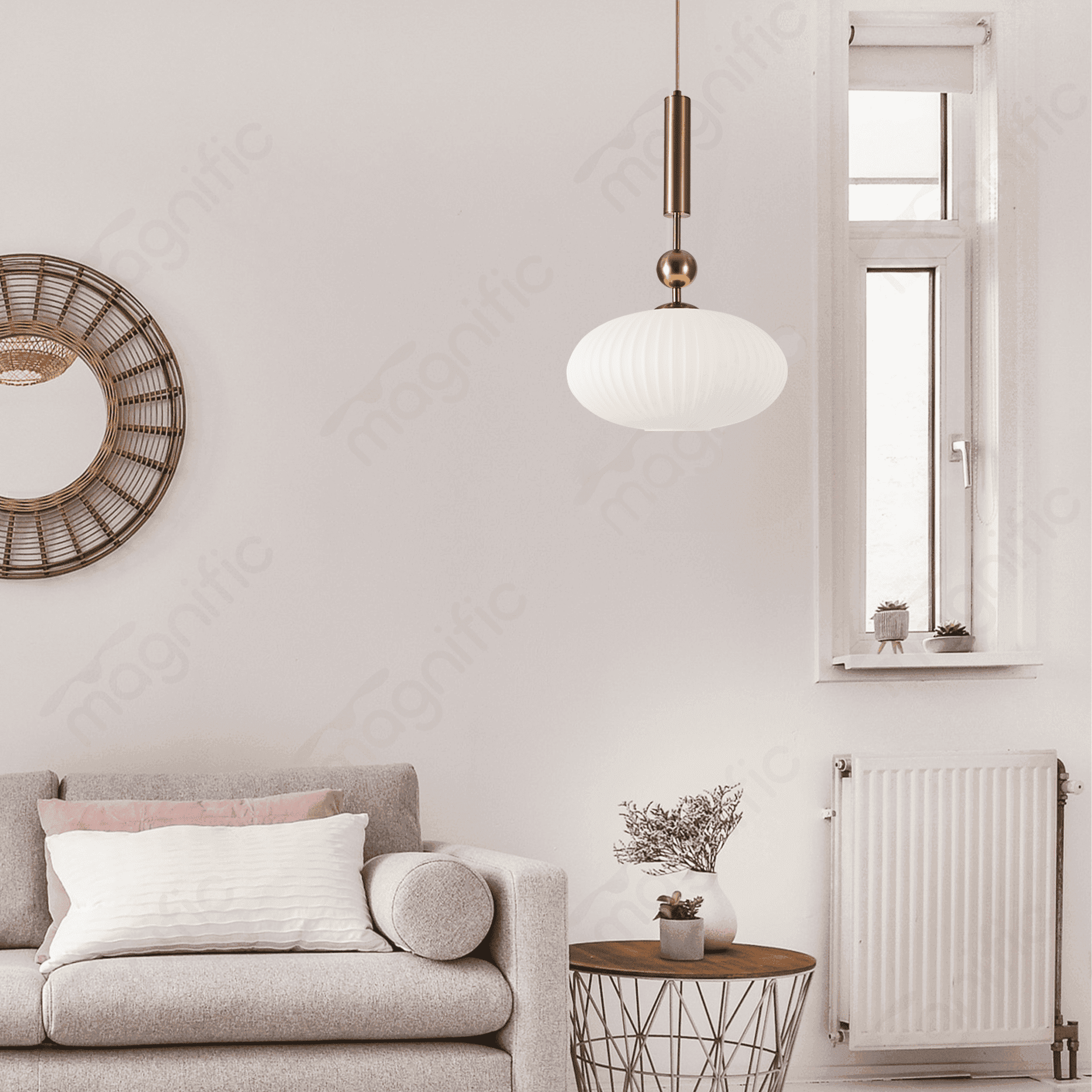 | Finishing | Bronze + Milky White Glass Finishing |