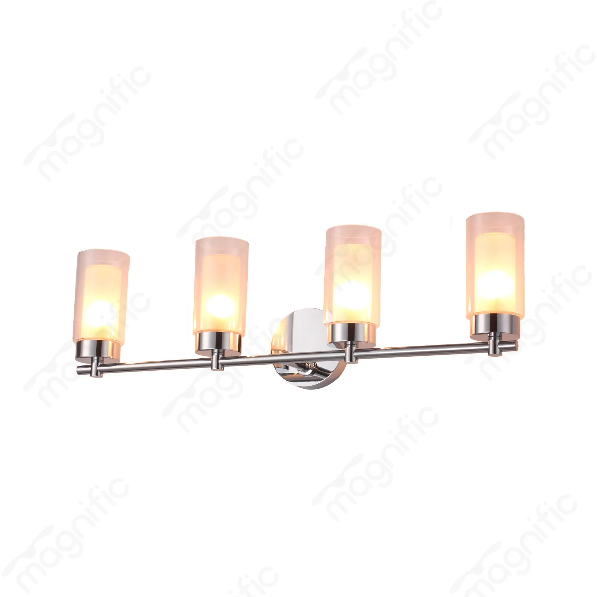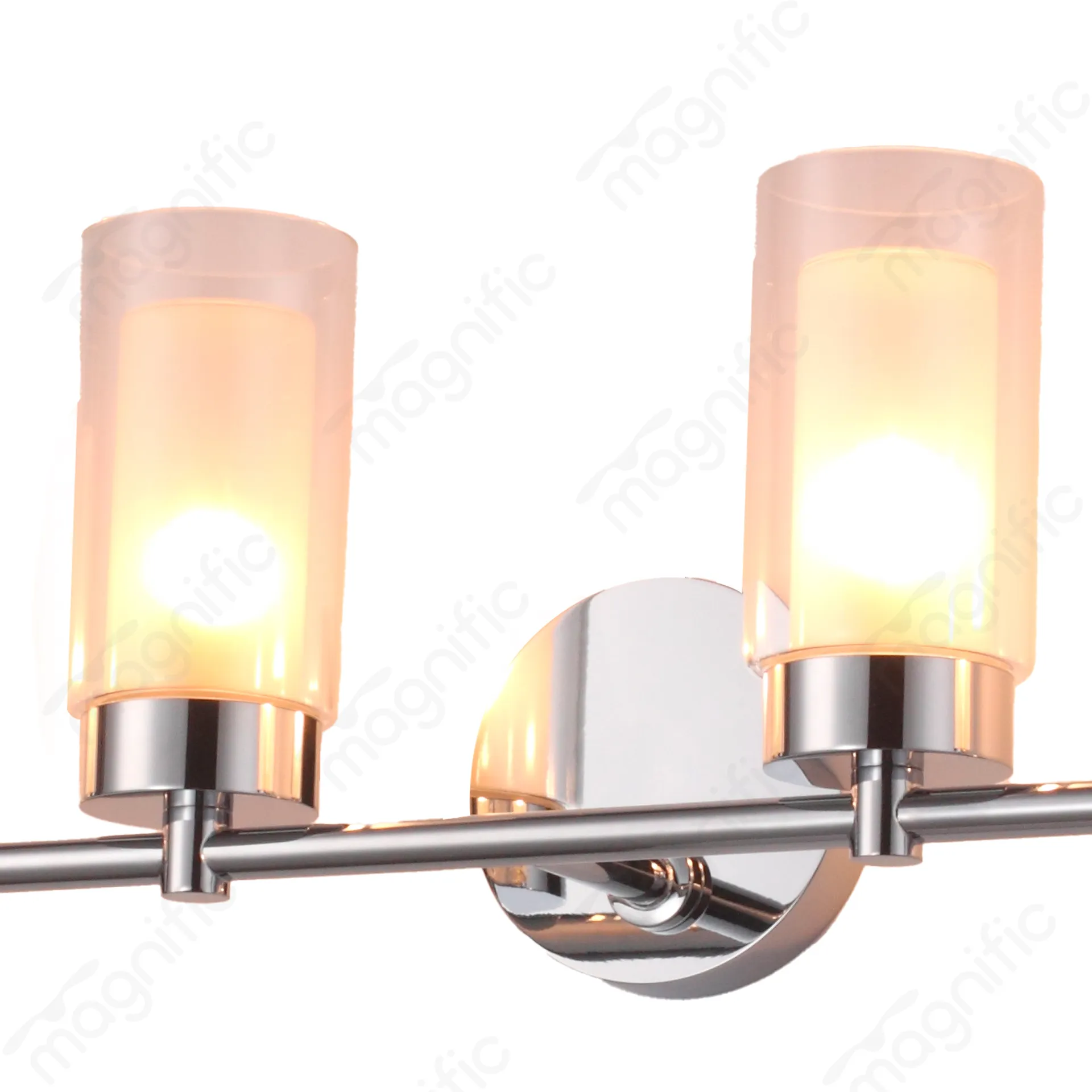 A sense of modern sophistication to your space with this Chrome and Glass Wall Light, perfect for bedrooms, hallways, dressing areas, or living rooms. This sleek fixture combines a high-quality polished chrome backplate with frosted white glass shades, creating a visually striking contrast that adds refinement to any interior.