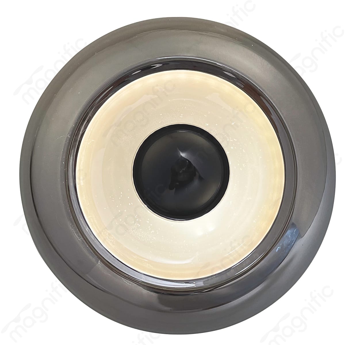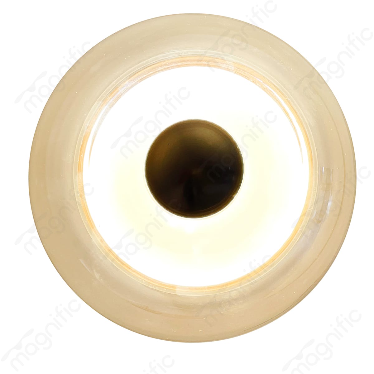 This modern wall light is a testament to the power of minimalist design. The circular shape and contrasting grey and amber finish create a visually striking piece that is both elegant and functional.