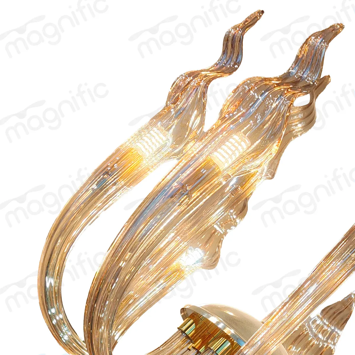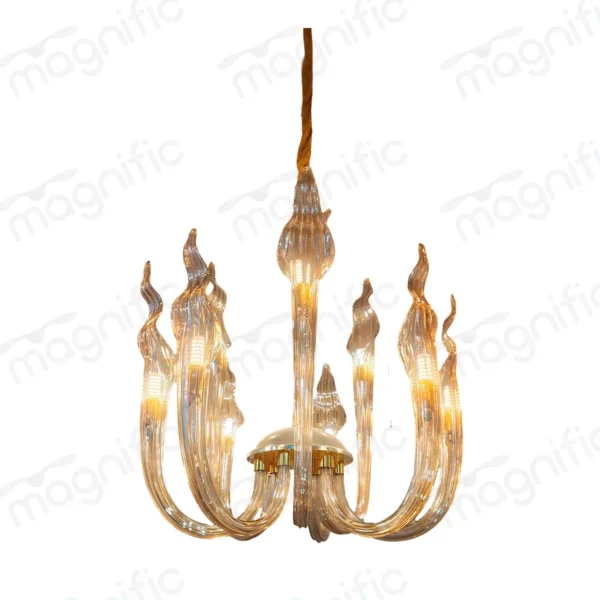 The Fiamma Blown Glass Flame-Arm Chandelier is Magnific most artisan-crafted fixture a Murano-inspired statement piece whose nine individually formed glass arms sweep upward in flowing, flame-tipped curves that carry within them the visual memory of centuries of Venetian glass chandelier tradition, reinterpreted for the contemporary luxury interior.