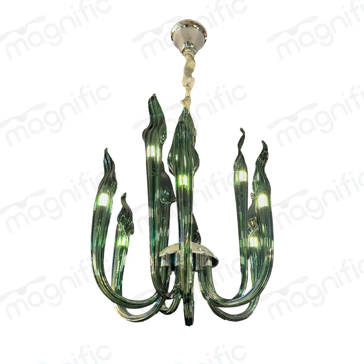 The Fiamma Blown Glass Flame-Arm Chandelier is Magnific most artisan-crafted fixture a Murano-inspired statement piece whose nine individually formed glass arms sweep upward in flowing, flame-tipped curves that carry within them the visual memory of centuries of Venetian glass chandelier tradition, reinterpreted for the contemporary luxury interior.