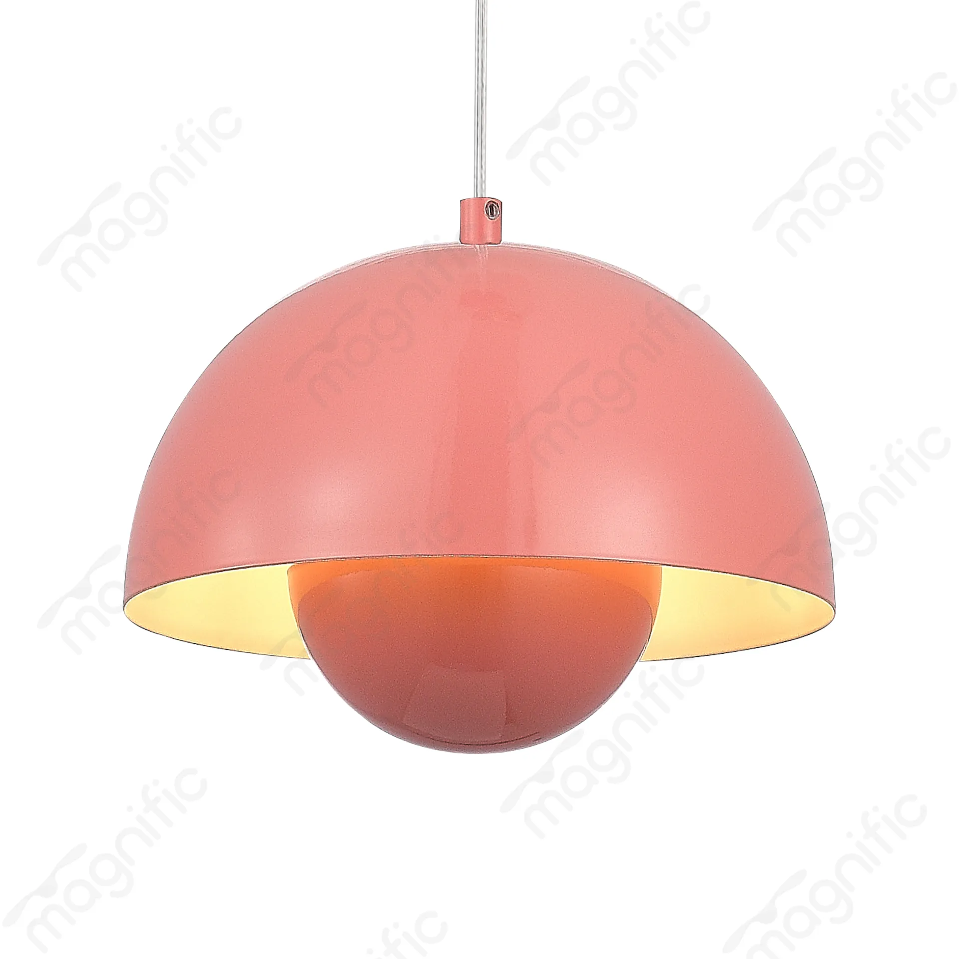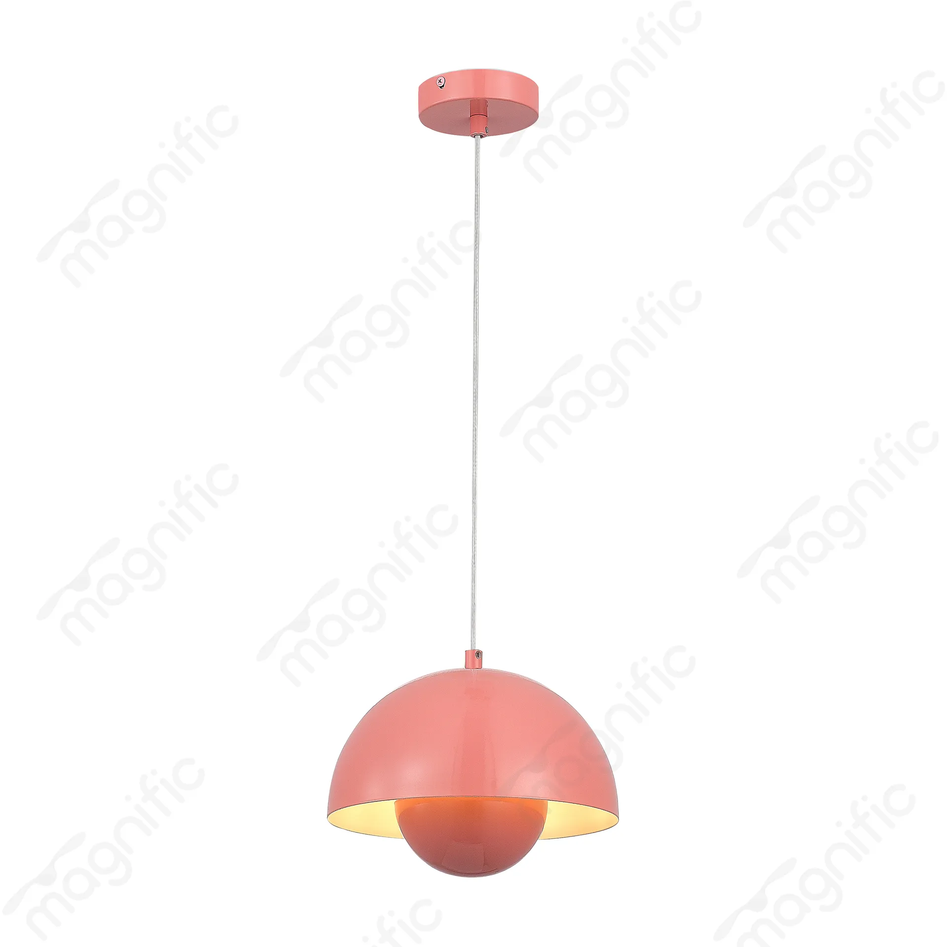 This modern pendant light features a beautiful pink finish and a metal shade, adding a touch of soft elegance to your kitchen or bedroom. It utilizes a standard E27 bulb for soft and warm illumination.