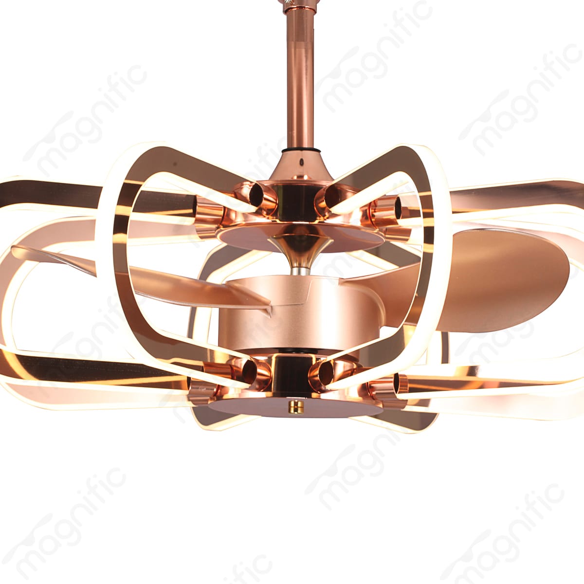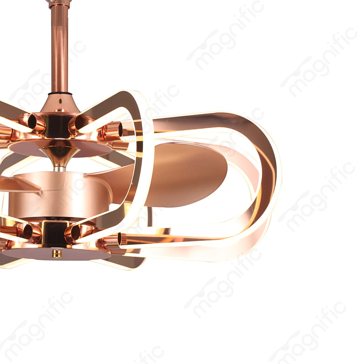 Indulge in modern opulence with the Magnific Designer Fan’s Saffron, a 24-inch fandelier that seamlessly blends artistry and innovation. Its sleek, minimalist design, available in both French gold and rose gold, adds a touch of sophistication to any space. The Saffron powerful 100×15 DC motor ensures whisper-quiet operation while delivering a refreshing breeze with its 8250 CFM airflow. The integrated 120-watt LED light casts a warm, inviting glow with three color temperature options , allowing you to set the perfect ambiance. With a convenient 6-speed remote control and timer function, you can easily adjust the fan and light settings to your liking. The Saffron is ideal for foyers, dining, small rooms, walk-in wardrobes, and other small areas.