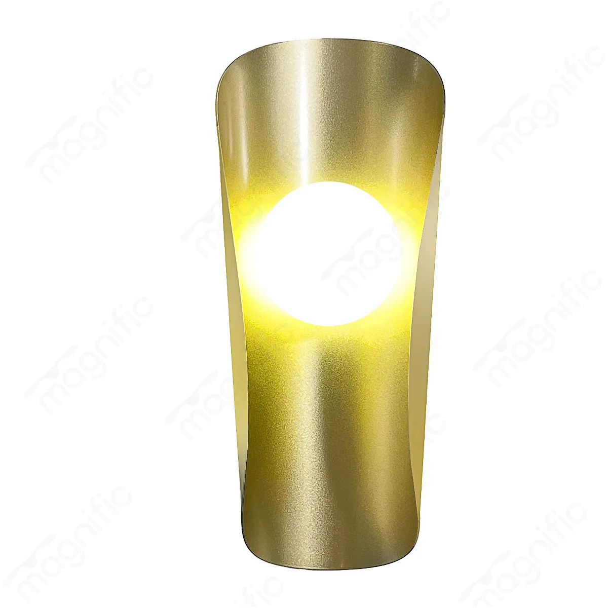The Magnific wall light offers minimalist sophistication. Its curved metal form, available in black or gold finish, directs a soft LED light upwards through an open top. Ideal for creating a modern ambiance in bedrooms, hallways, or as subtle accent lighting.