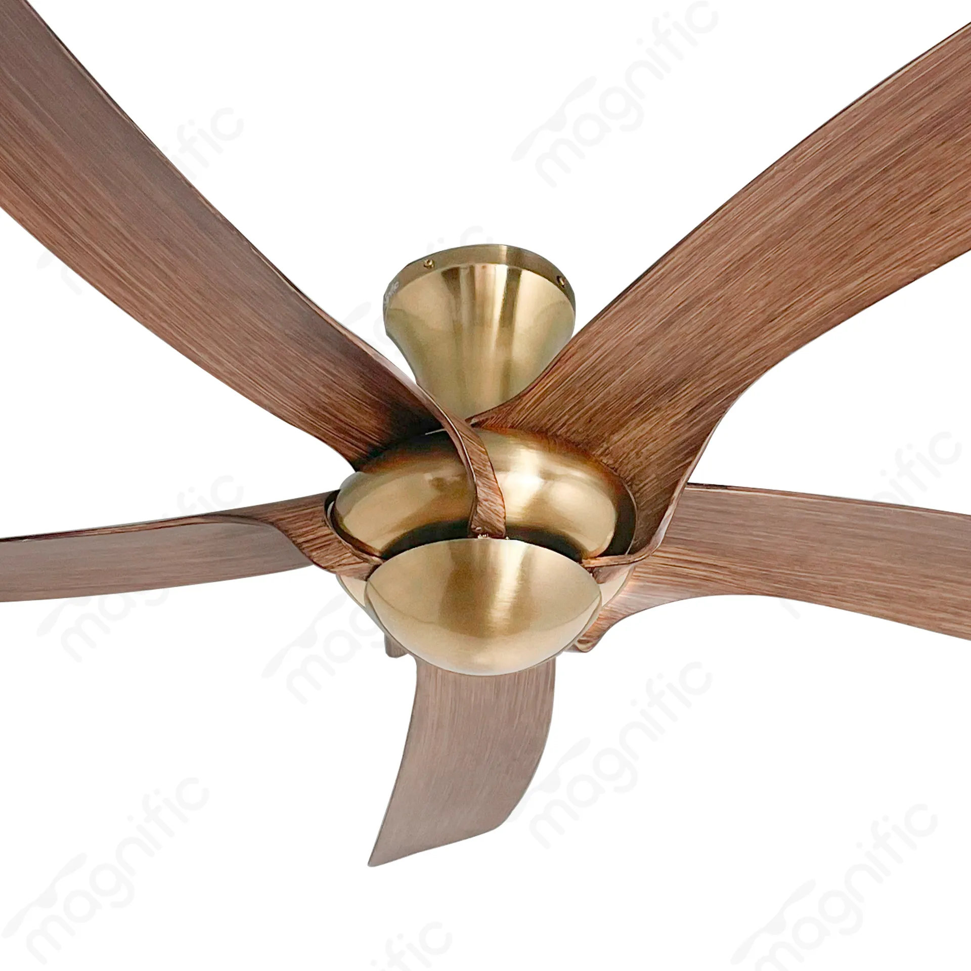 Its five elegantly curved blades span 52 inches, delivering a powerful airflow of up to 8950 CFM—ideal for large living spaces.